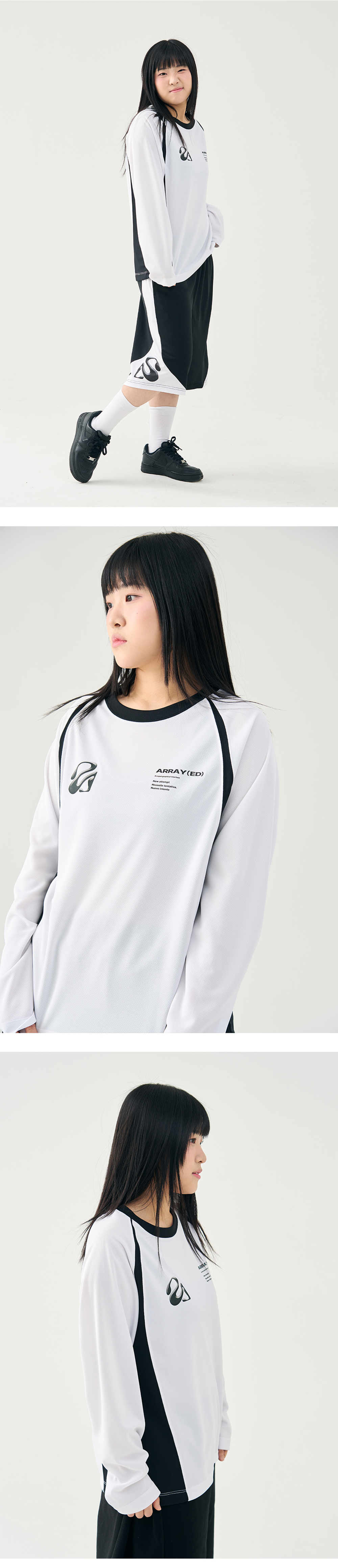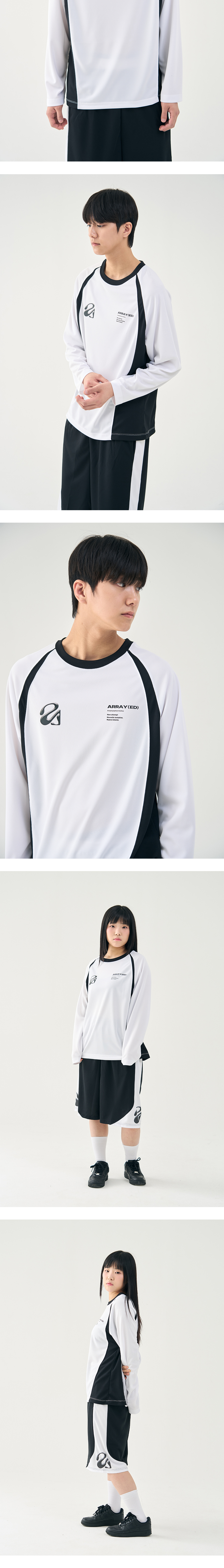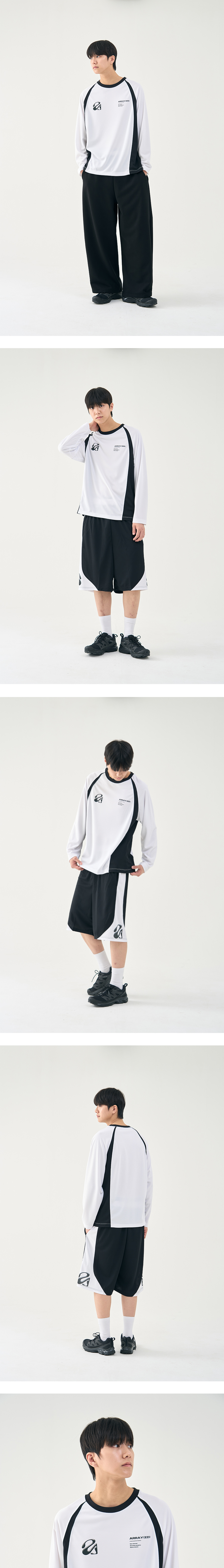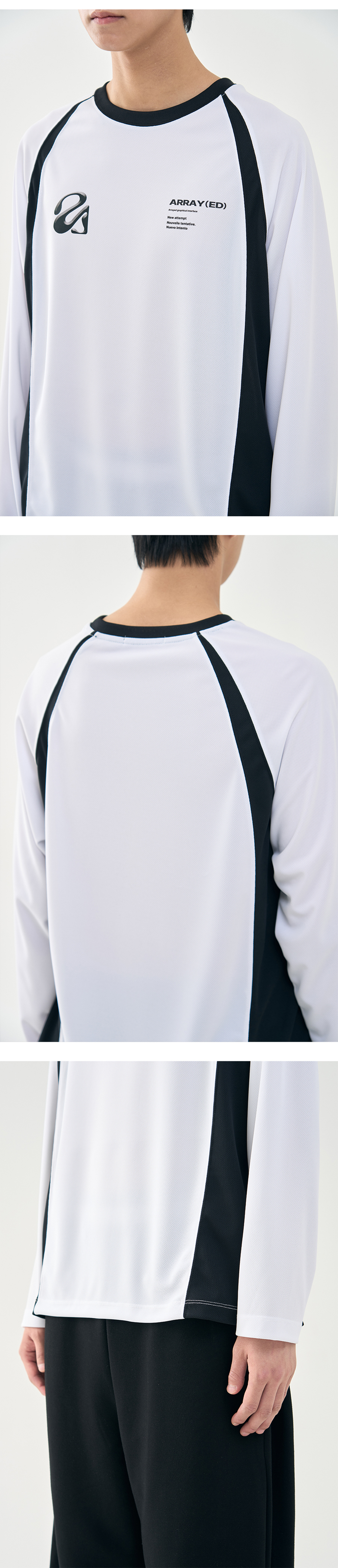 어레이드 플렛 백 메쉬 래글런 롱슬리브 티셔츠 화이트