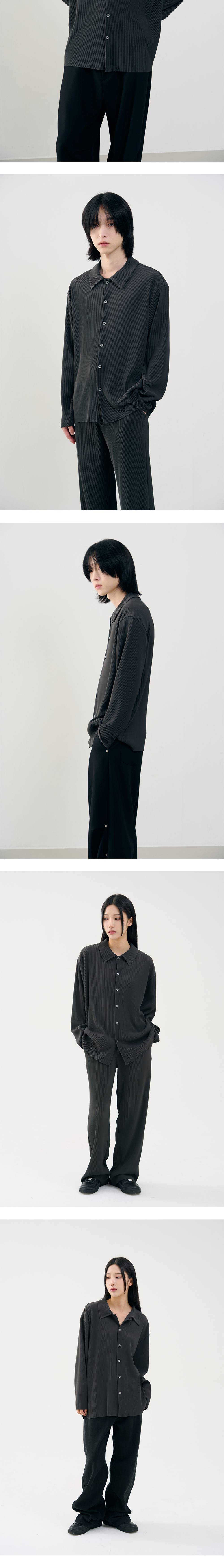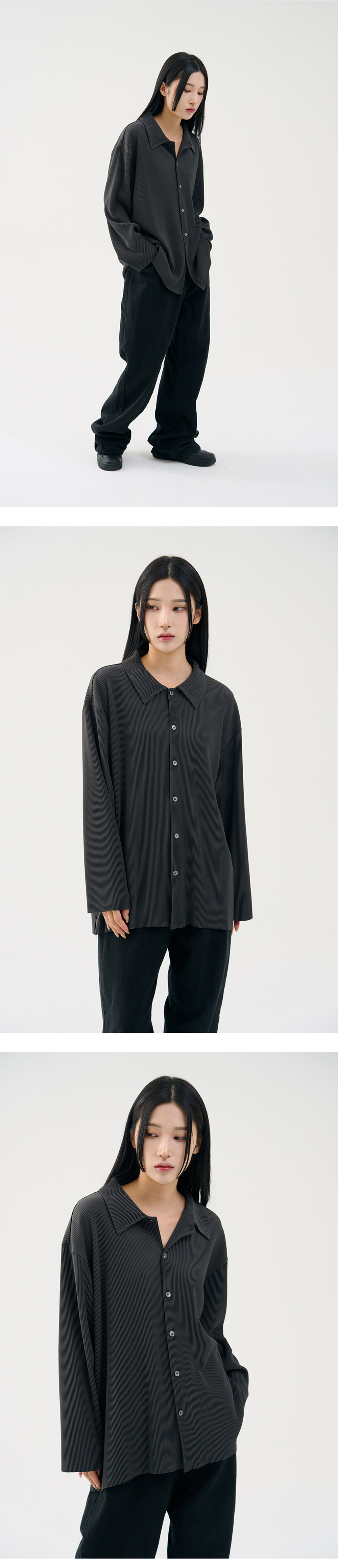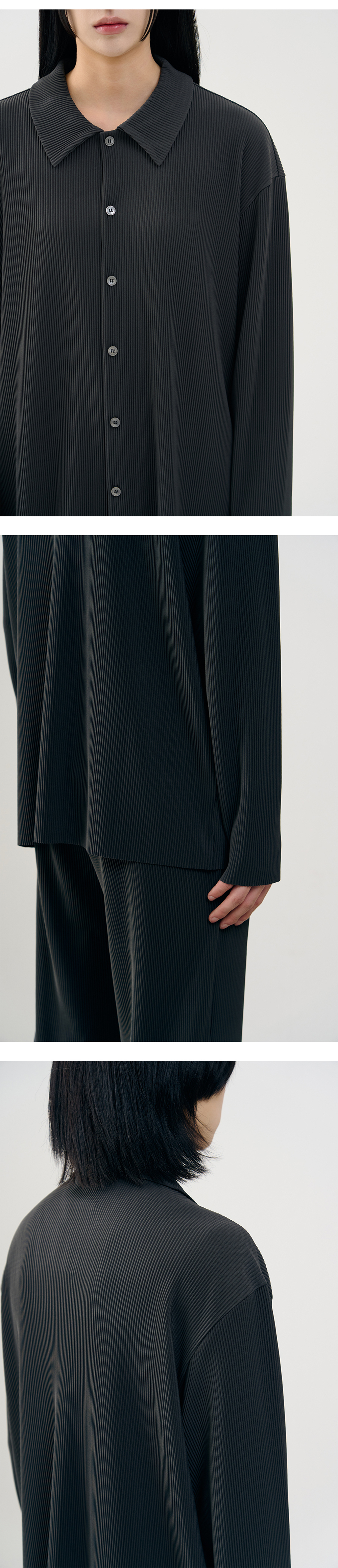 플리츠 소재를 활용하여 어레이드의 감성을 녹인 제품으로 흐트러짐 없이 유려하게 떨어지는 실루엣과 함께 청량한 착용감을 느끼실 수 있습니다. · 몸의 라인을 따라 유연하게 떨어지는 소재감 · 어깨라인이 자연스럽게 떨어지는 세미 오버 실루엣 · 다양한 코디에 오랜 기간 범용성 놓게 활용 가능 · 옷의 밸런스를 맞춰 깔끔하게 놓이는 카라