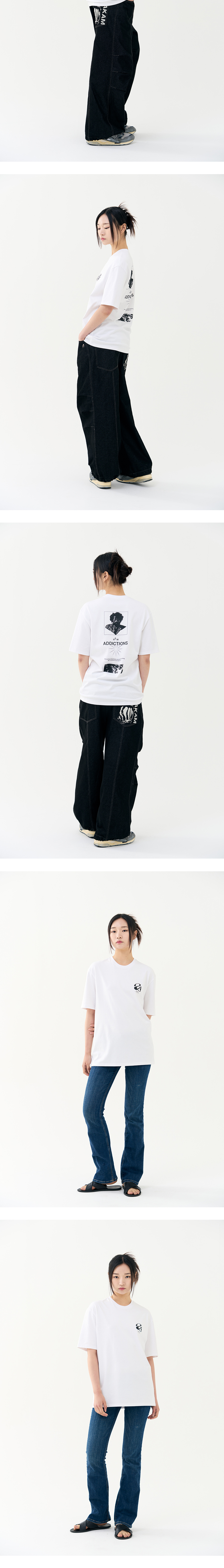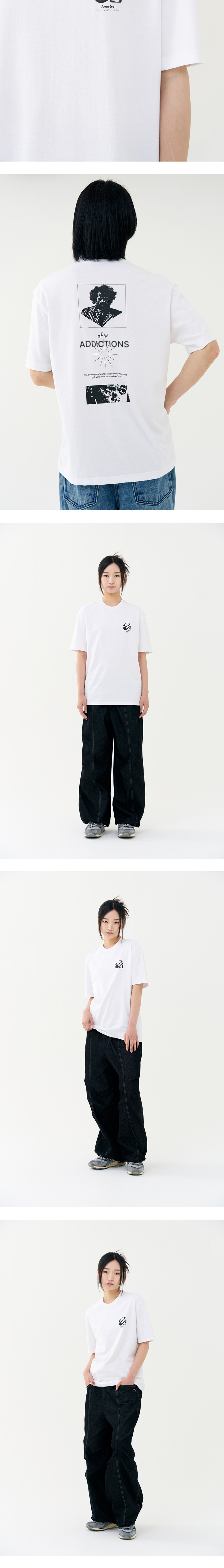 중독이라는 단어에 영감을 받아 디자인 계발, 부드러운 터치의 고급스러운 싱글지 원단을 사용하여 핏, 소재, 착용감에 초점을 맞춘 제품으로 잦은 세탁에도 변형 없이 오랜 기간 활용하실 수 있습니다. · 체형보정을 위한 섬세한 패턴 작업 · 적절히 여유 있는 세미 오버핏 실루엣 · 이너와 단품에 최적화된 라운드넥 디자인 · A.G.I 기획상품으로 나온 트렌디한 프린팅 아트웍