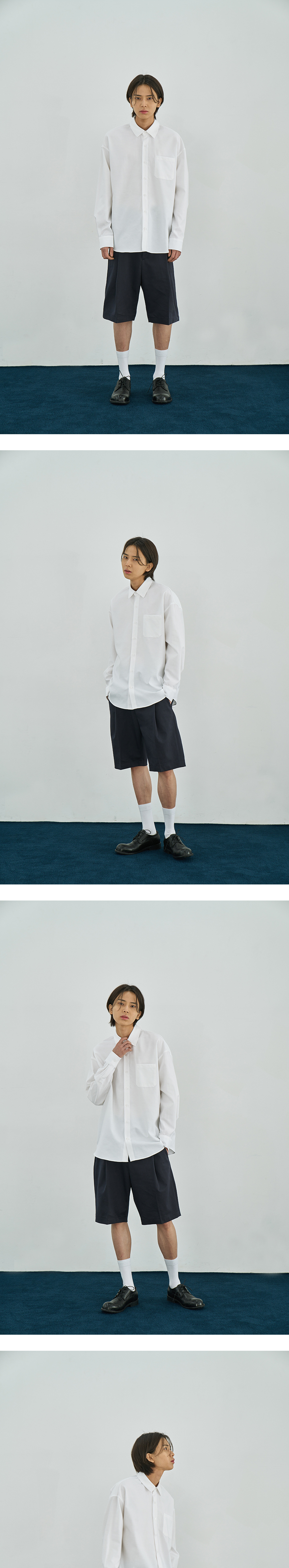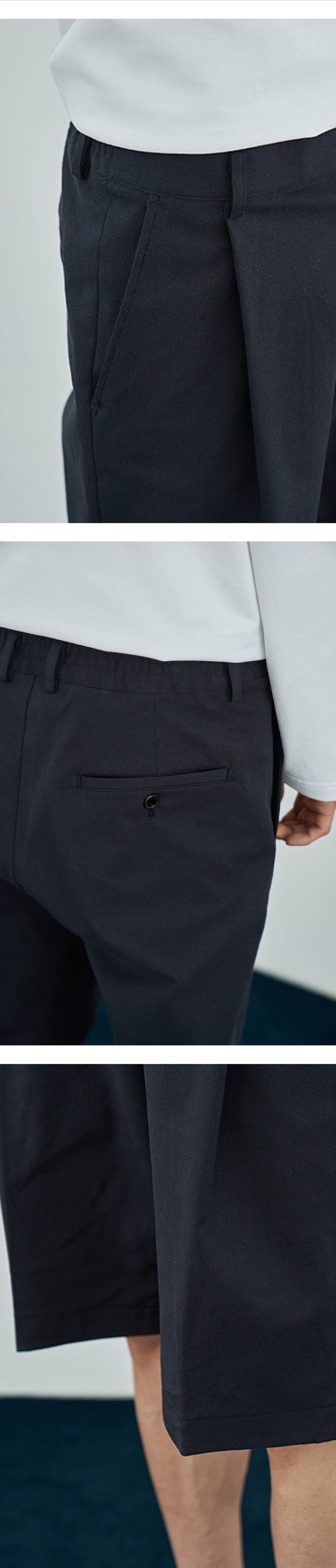 어레이드 와이드 원턱 밴딩 하프 치노 팬츠 네이비