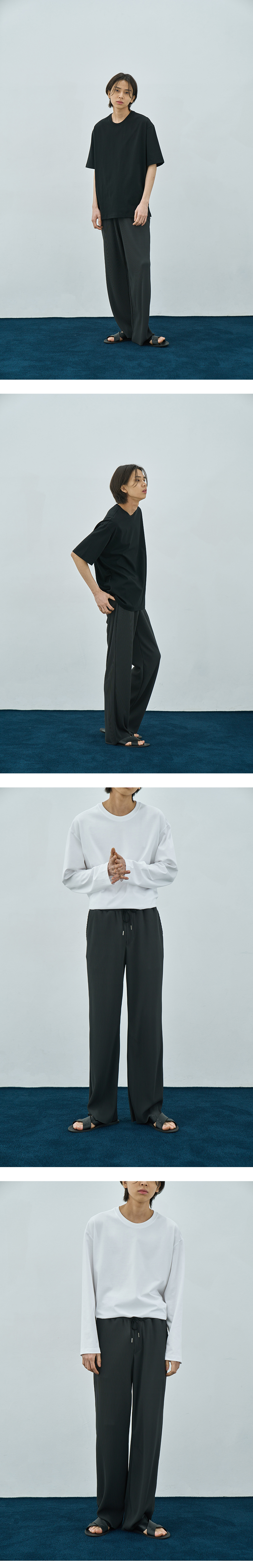 · 뛰어난 안착감을 위한 고탄력 허리 밴딩 · 스트링 끈으로 캐주얼한 분위기 연출 가능 · 플리츠 소재를 사용하여 제작된 밴딩 팬츠 디자인 · 특유의 자연스럽고 루즈하게 떨어지는 세미 와이드 실루엣 플리츠 소재를 활용하여 어레이드의 감성을 녹인 제품으로 흐트러짐 없이 유려하게 떨어지는 실루엣과 함께 청량한 착용감을 느끼실 수 있습니다.