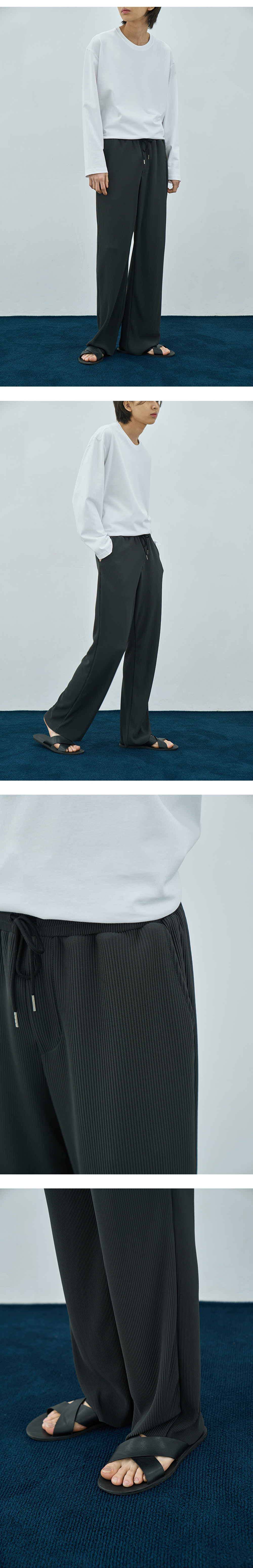 Arrayed Semi Wide Banding Pleats Pants Gray