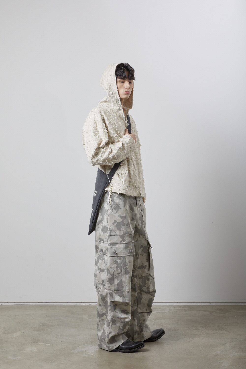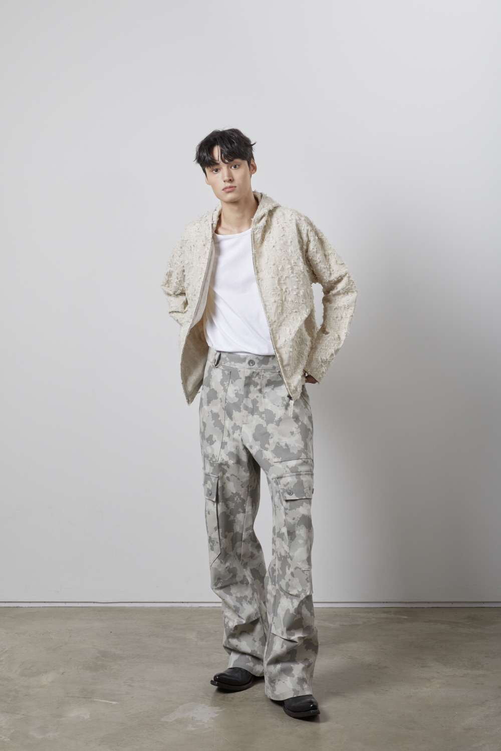 [Product Info] - 그레이와 베이지 톤의 설상 카모 패턴 - 카고 포켓에 3개의 단추 디테일 - 허리 하프밴딩 [Material] - 코튼 97% 폴리우레탄 3% [Size] 1 사이즈 - 허리 33.5~42.5 / 총장 107 / 밑위 34 / 허벅지 33 / 밑단 25 cm 2 사이즈 - 허리 36.5~45.5 / 총장 112 / 밑위35 / 허벅지 35 / 밑단 26 cm [Model] 185 cm 60 kg (2사이즈)