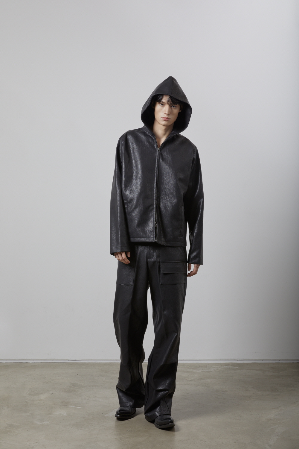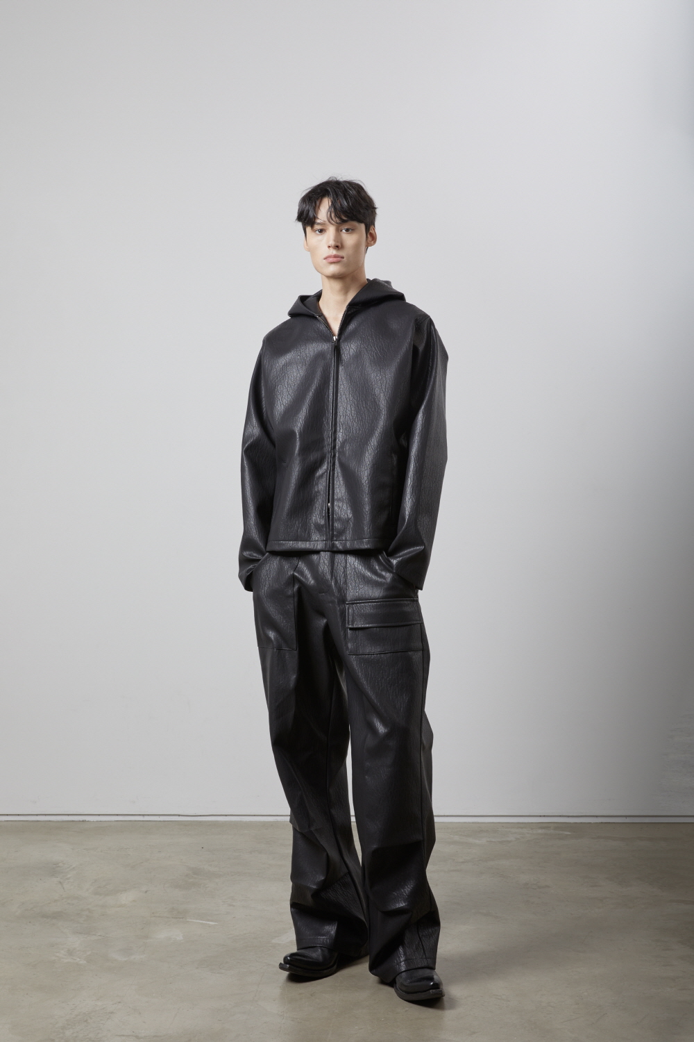 [Product Info] - 크랙 질감의 페이크 레더 원단 - YKK 투웨이 지퍼 - 뒷판 로고 가죽 패치 [Material] - 폴리 100% [Size] 총장 65 / 어깨 48 / 가슴 66 / 소매 66 cm [Model] 185 cm 60 kg