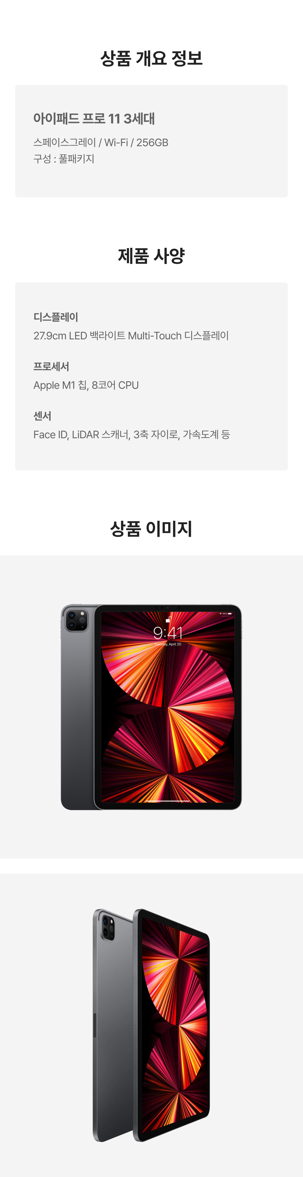 [A등급] 리퍼비시 아이패드 프로 11 3세대 wifi Apple M1 256기가 스페이스그레이