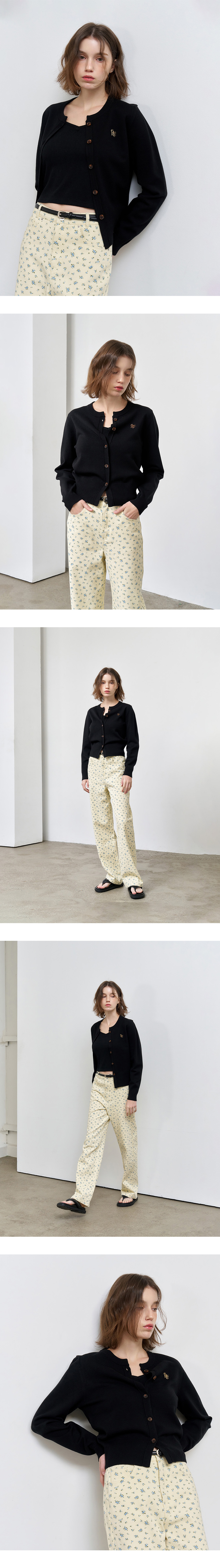 제너럴아이디어 우먼 에센셜 크루넥 가디건 블랙