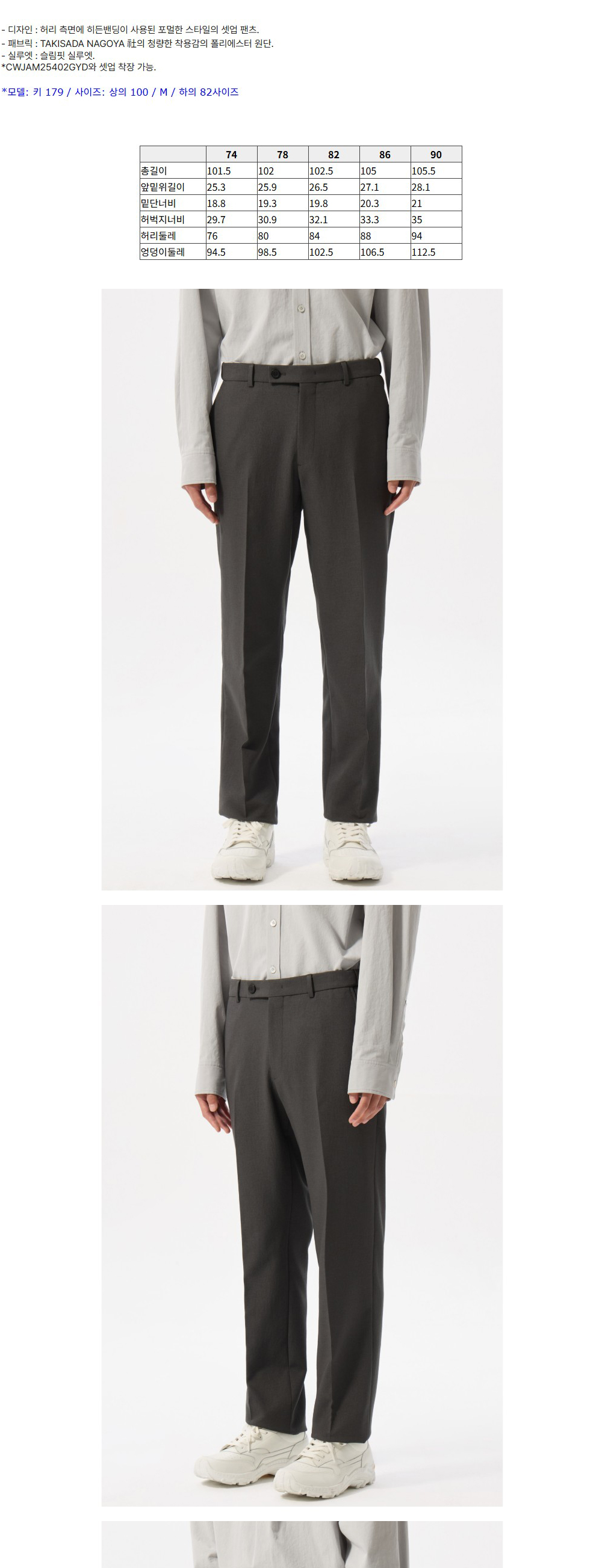 커스텀멜로우 슬림 핏 셋업 팬츠 다크 그레이