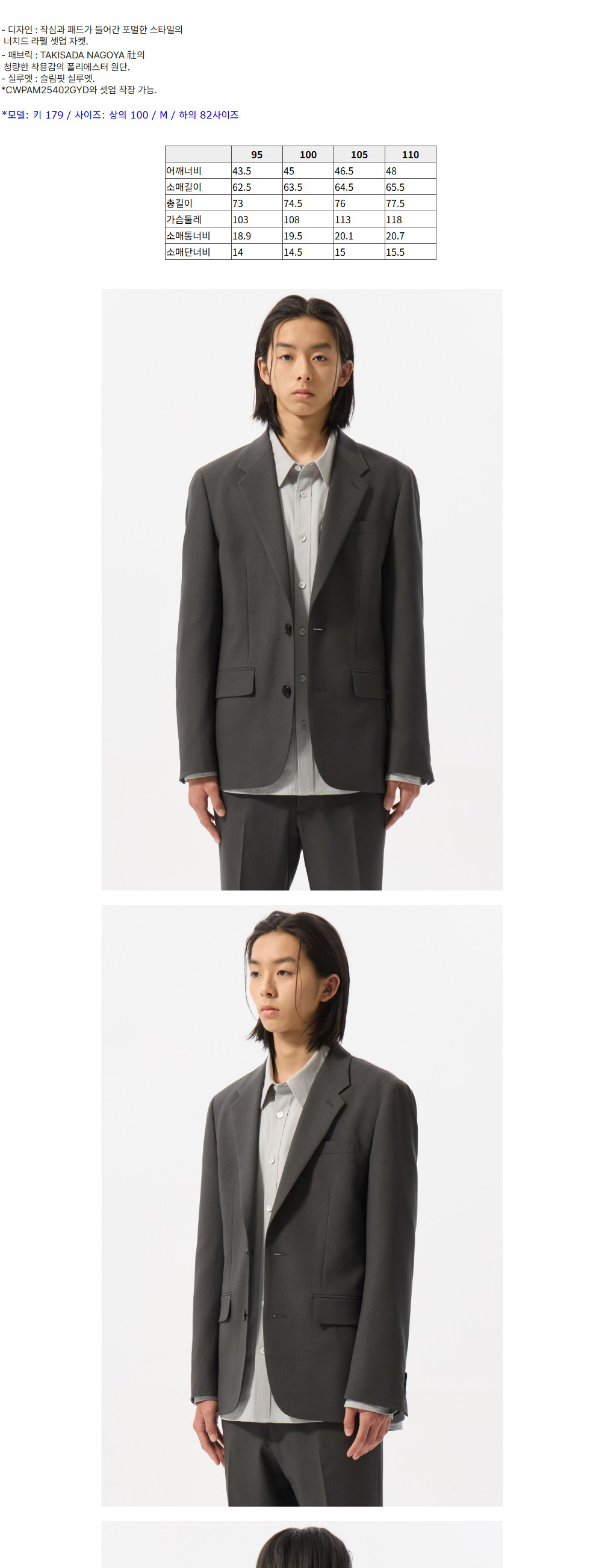 커스텀멜로우 슬림 핏 셋업 자켓 다크 그레이