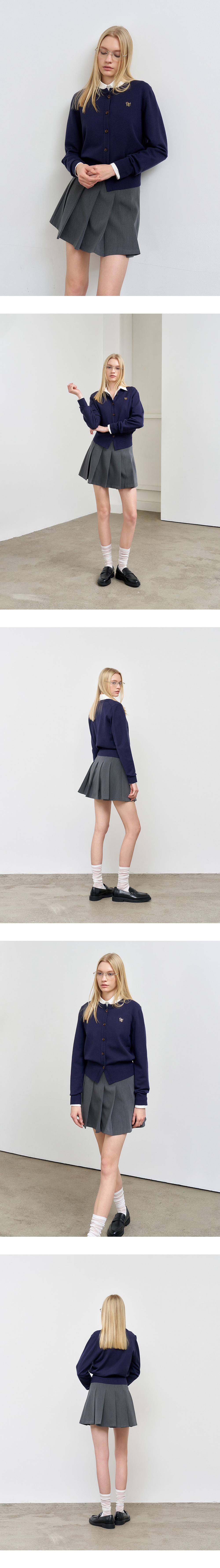 제너럴아이디어 우먼 에센셜 크루넥 가디건 네이비