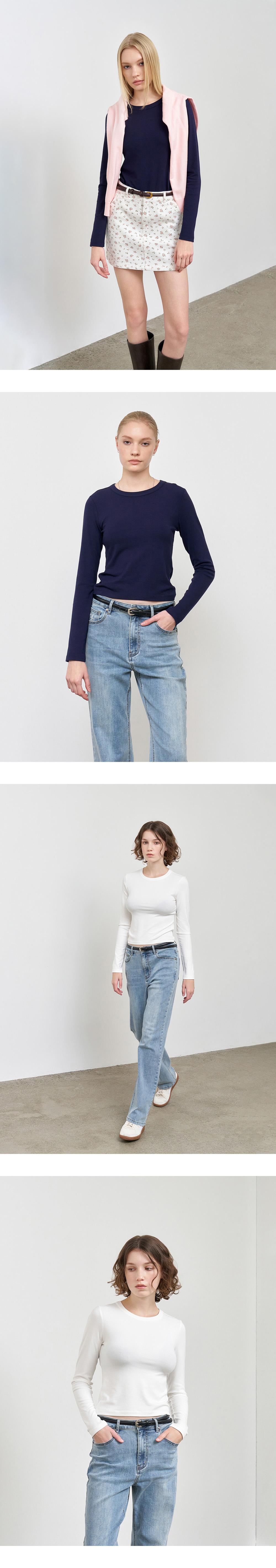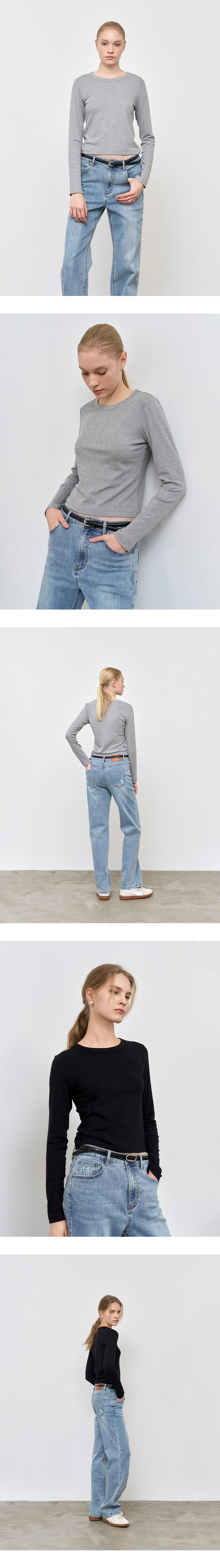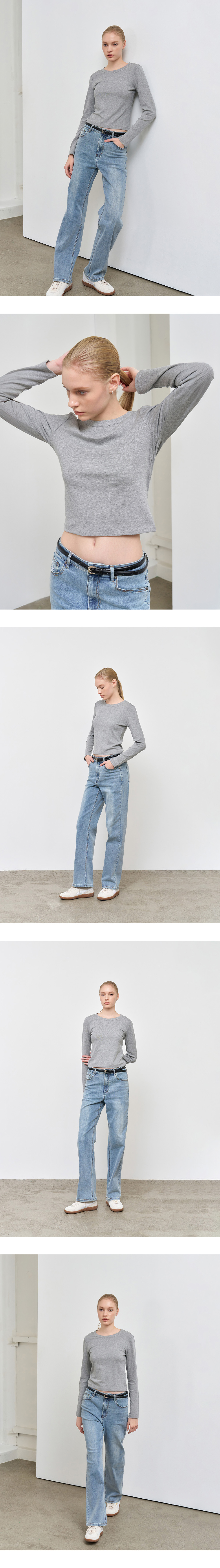 제너럴아이디어 우먼 슬림 크루넥 롱 슬리브 티 멜란지 그레이
