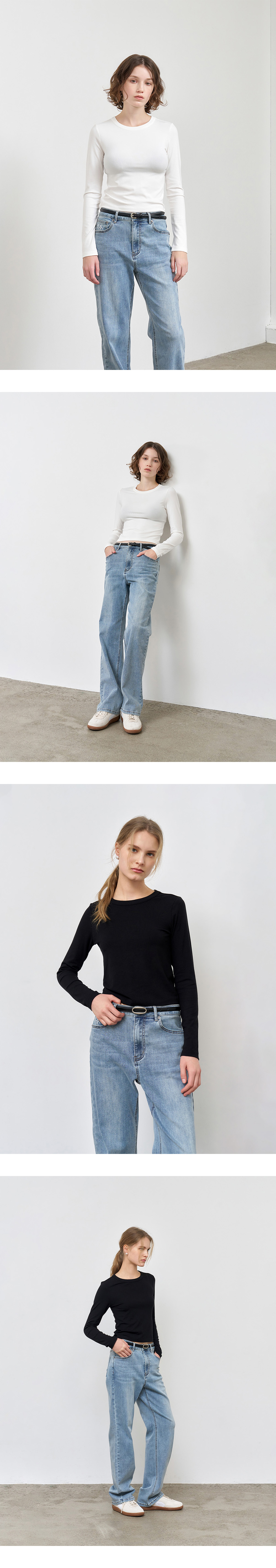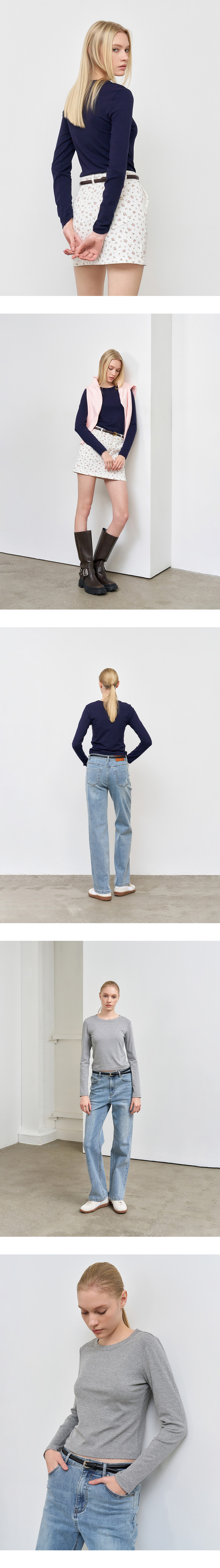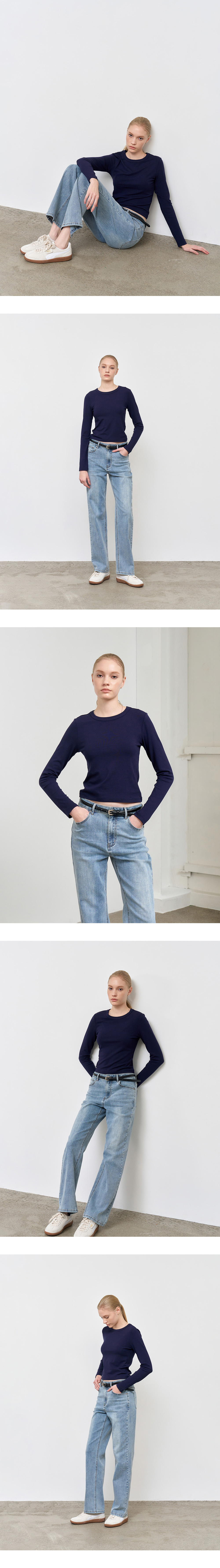 제너럴아이디어 우먼 슬림 크루넥 롱 슬리브 티 네이비