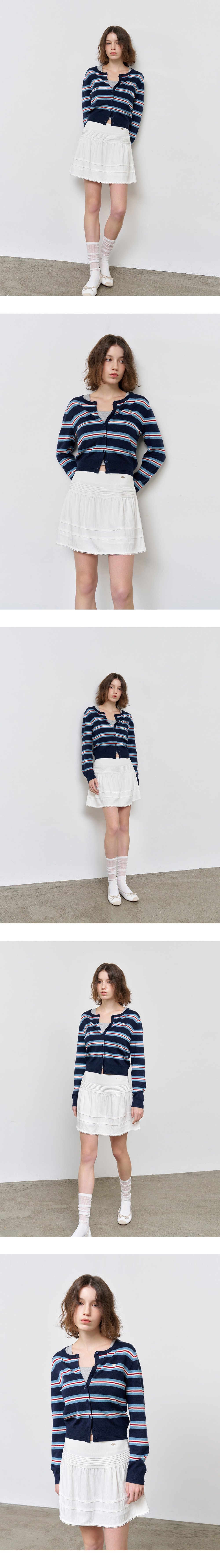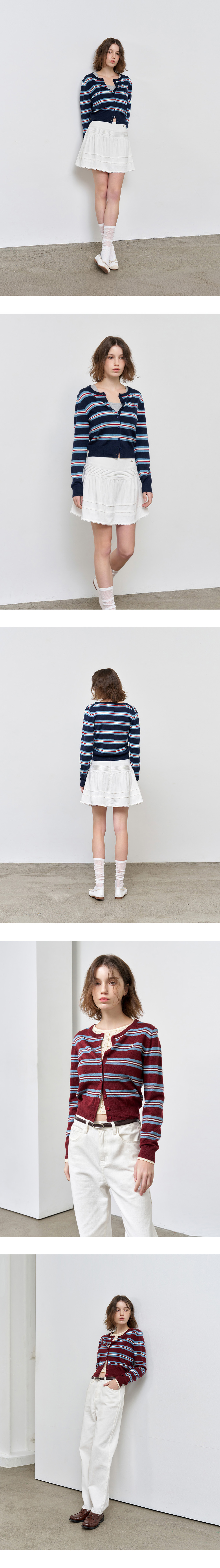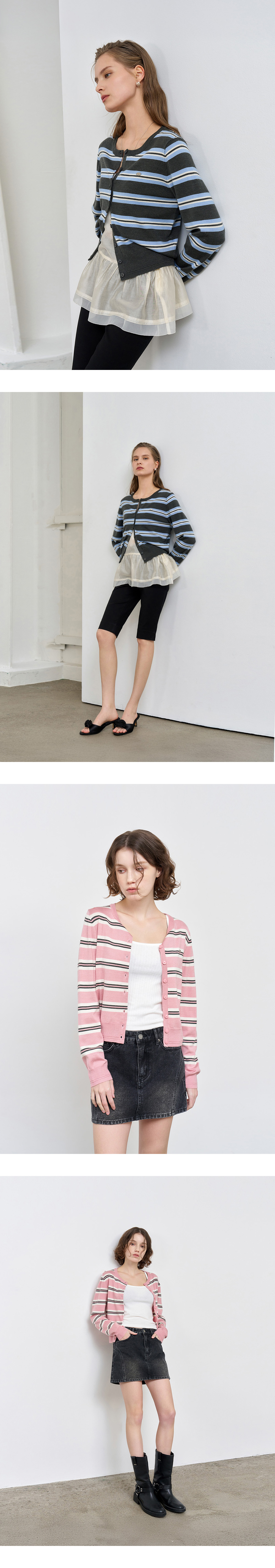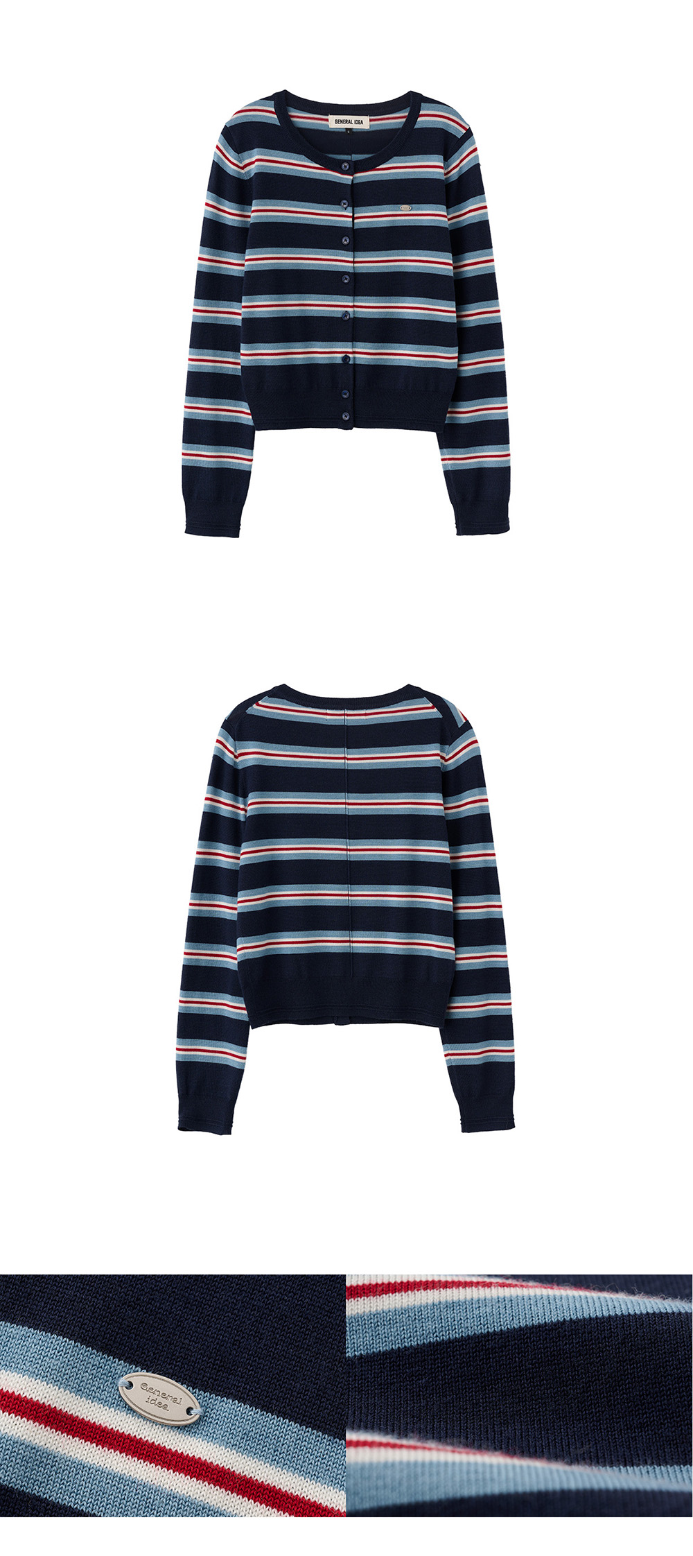 제너럴아이디어 우먼 멀티 스트라이프 크루넥 가디건 네이비