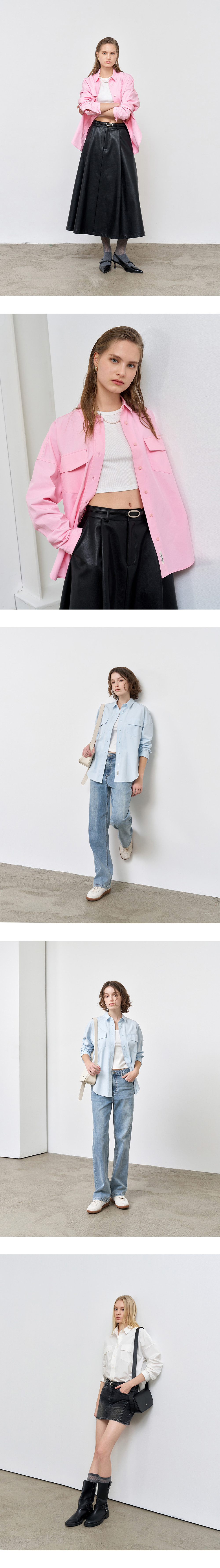 제너럴아이디어 우먼 루즈핏 포켓 코튼 셔츠 멜론