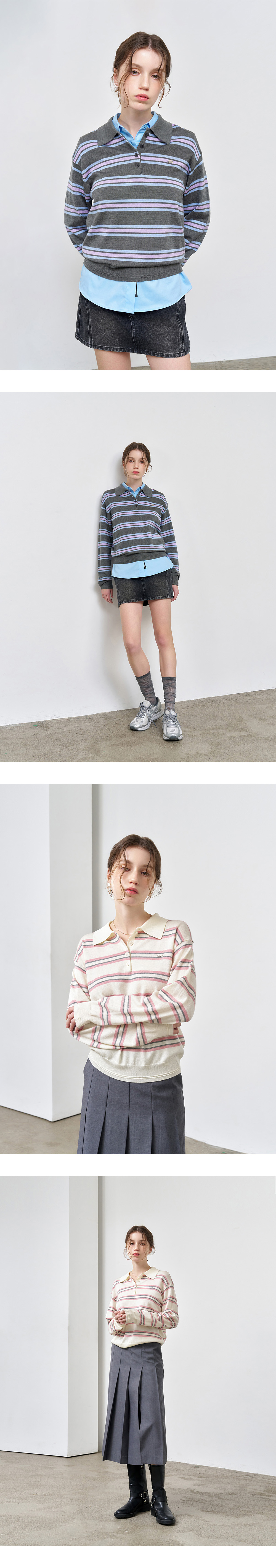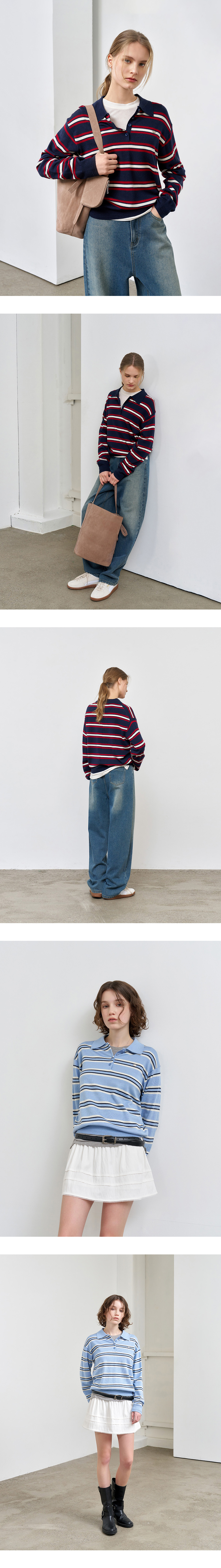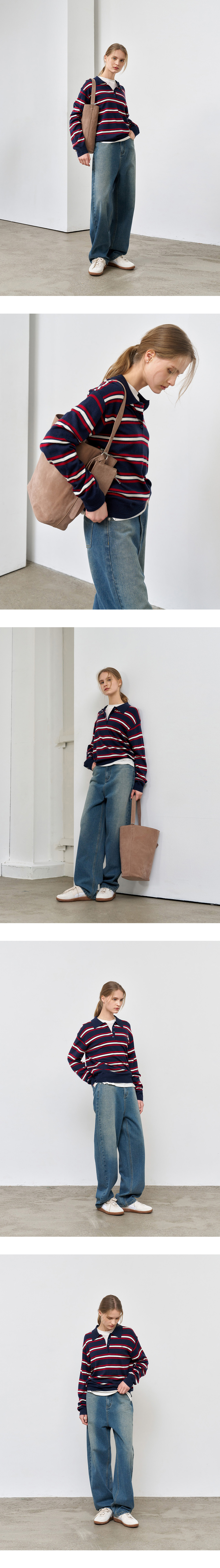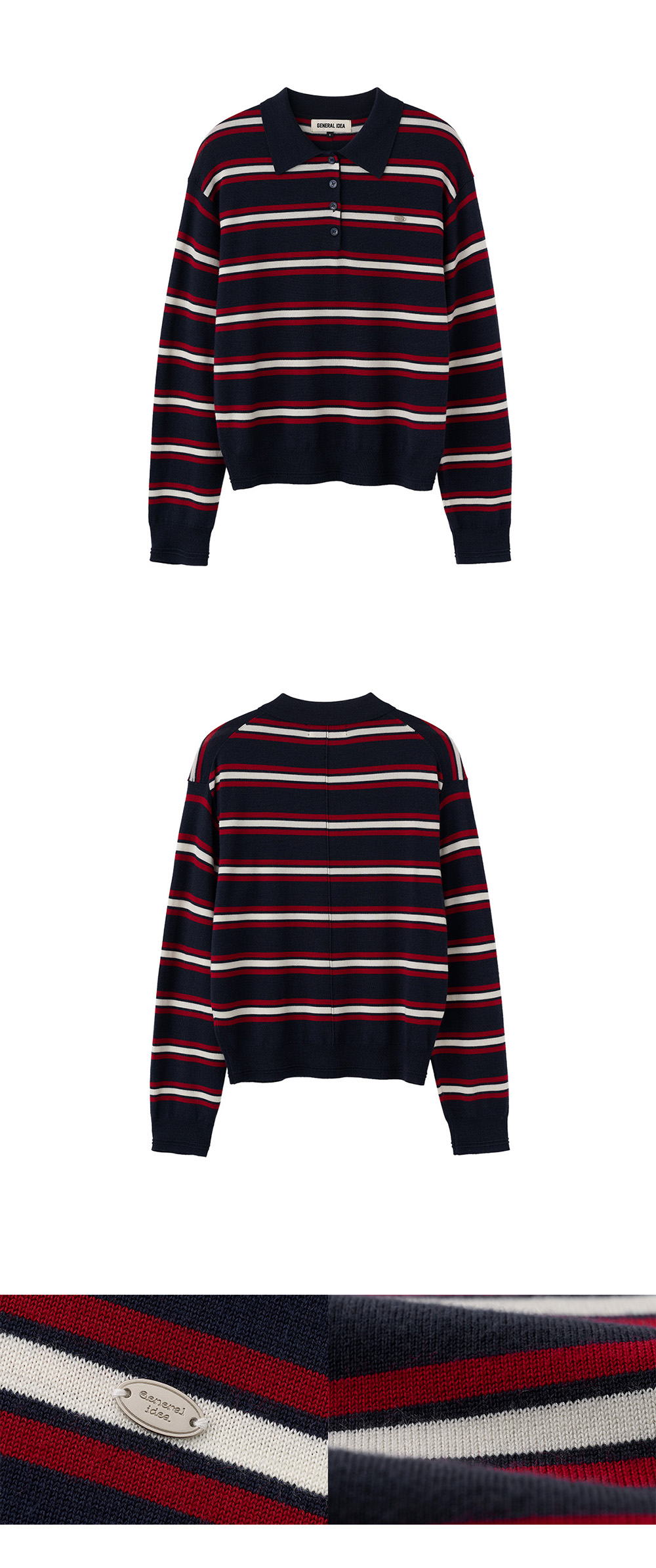 제너럴아이디어 우먼 멀티 스트라이프 루즈 카라 니트 네이비