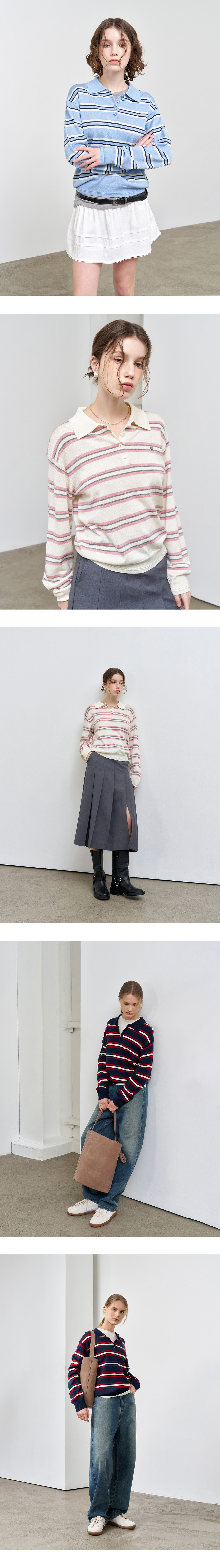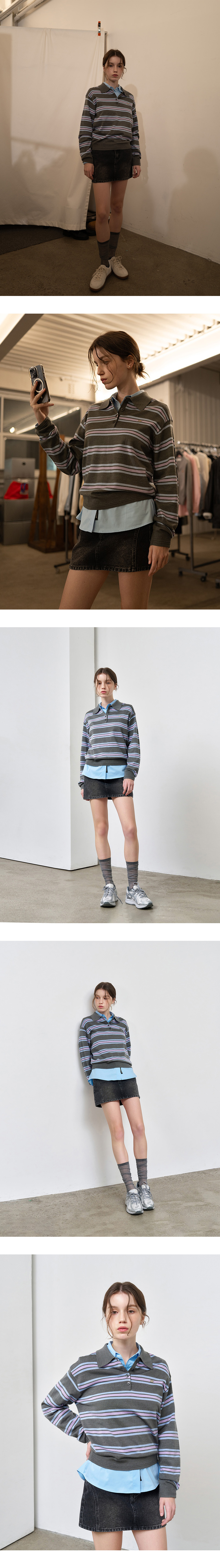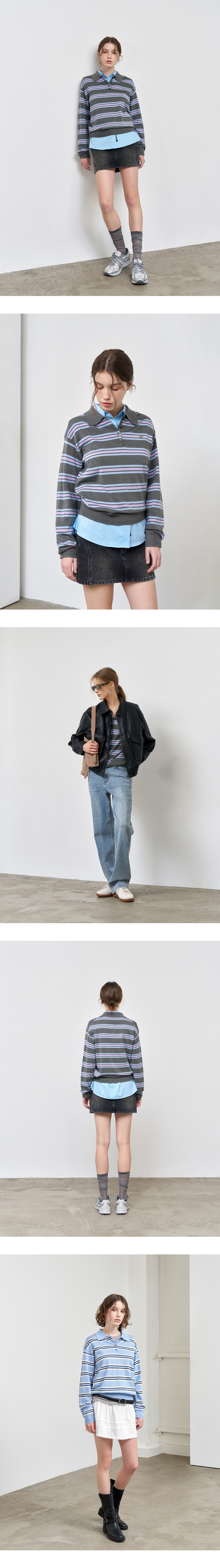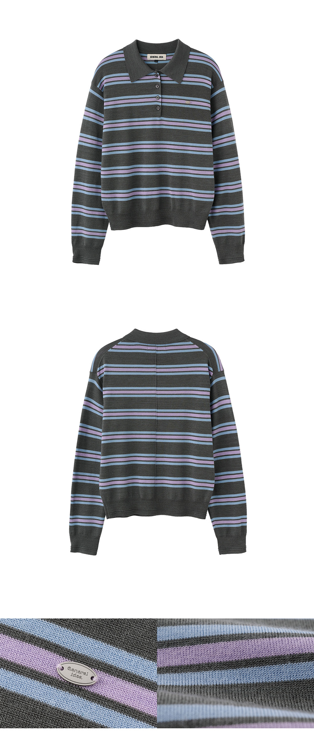 제너럴아이디어 우먼 멀티 스트라이프 루즈 카라 니트 그레이