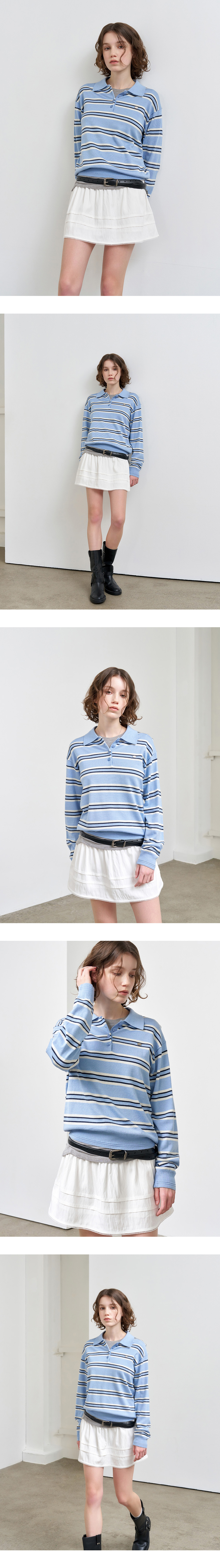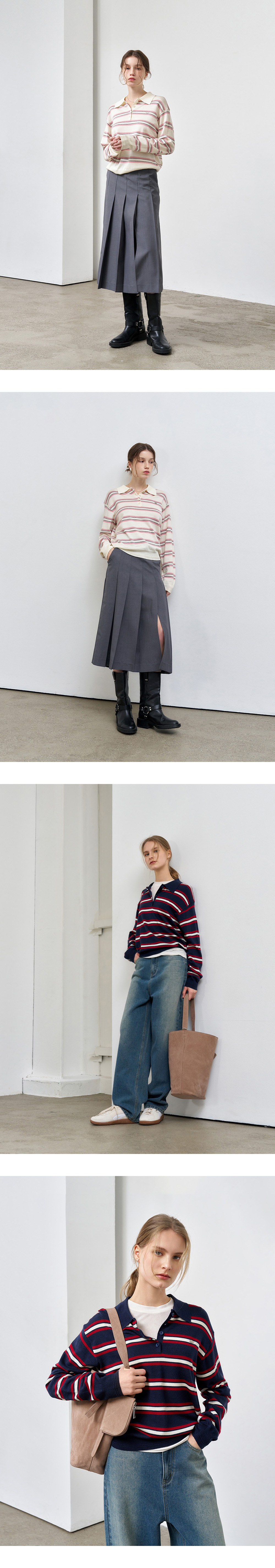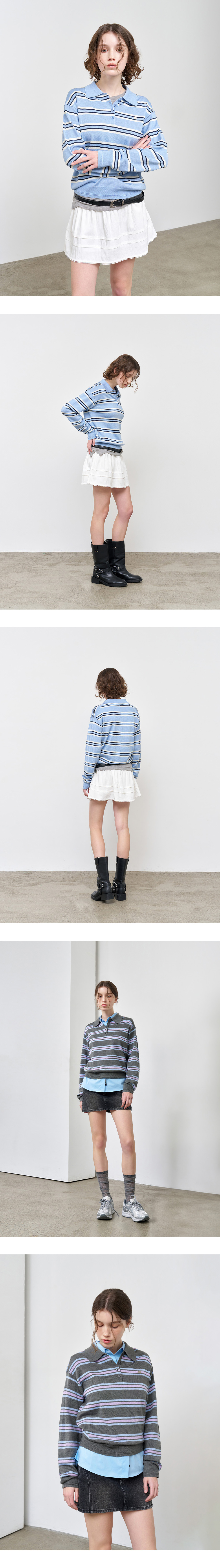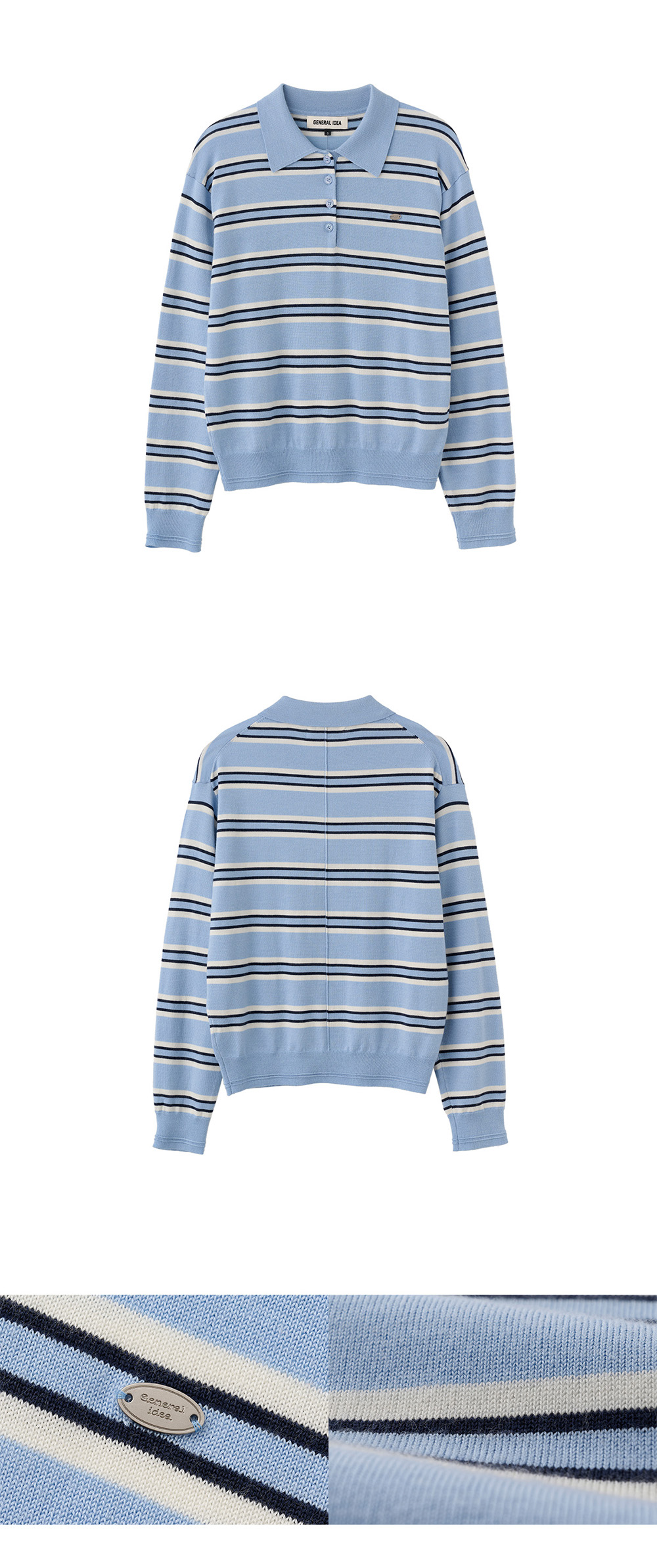 제너럴아이디어 우먼 멀티 스트라이프 루즈 카라 니트 블루