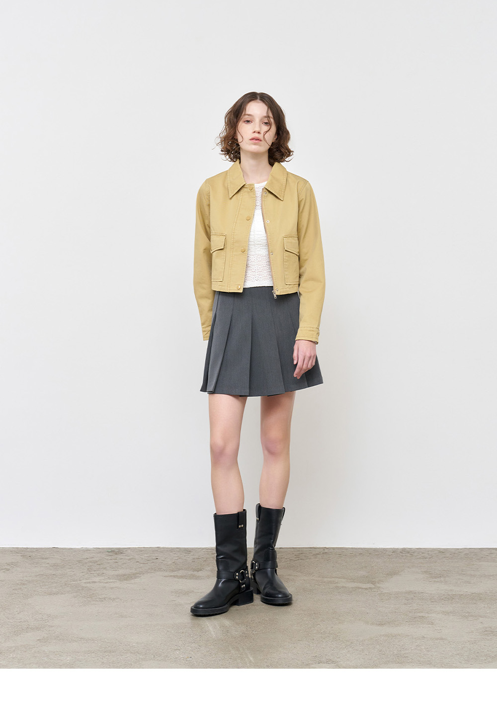제너럴아이디어 우먼 숏 집업 코튼 자켓 올리브