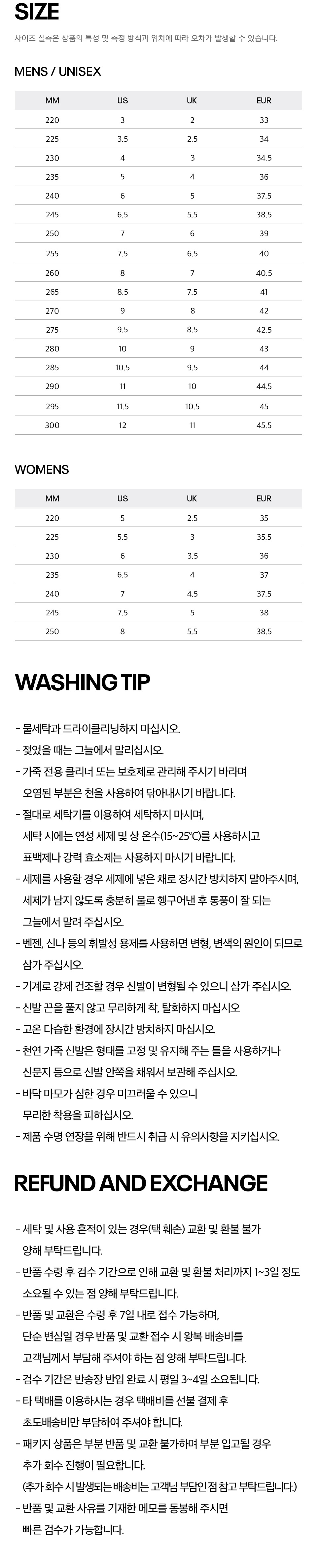 교환 및 반품 안내