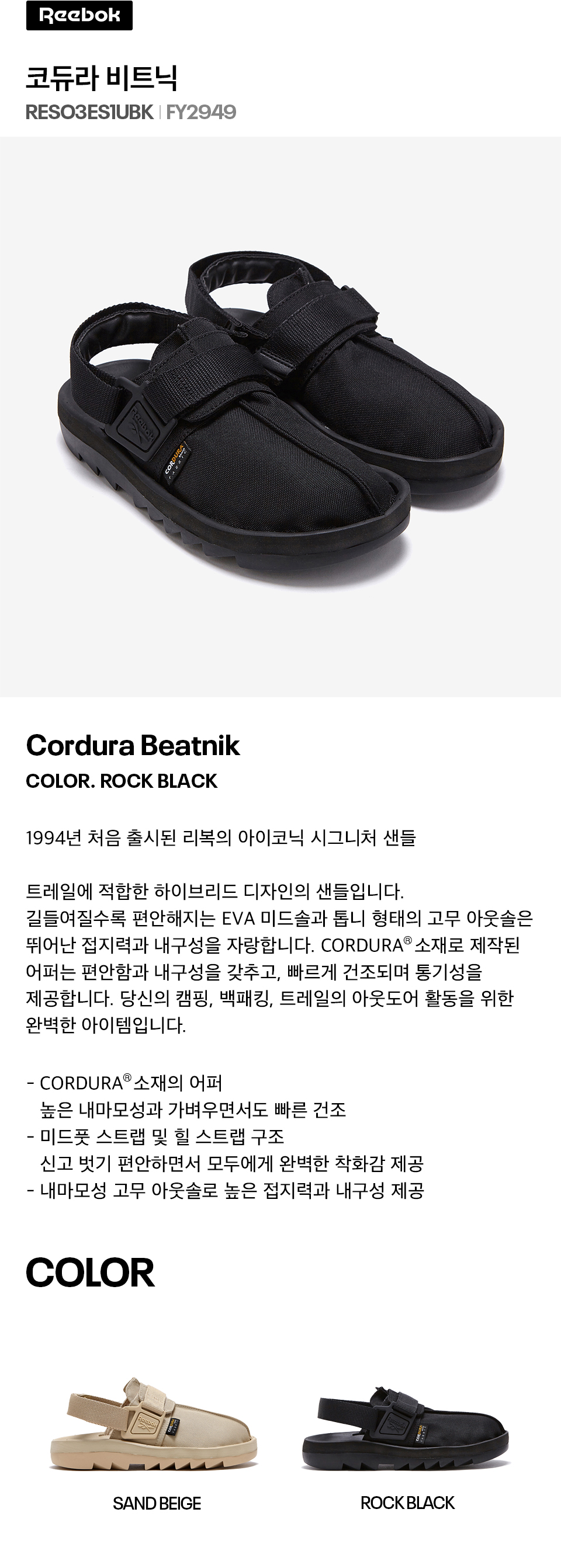 리복 코듀라 비트닉 락 블랙
