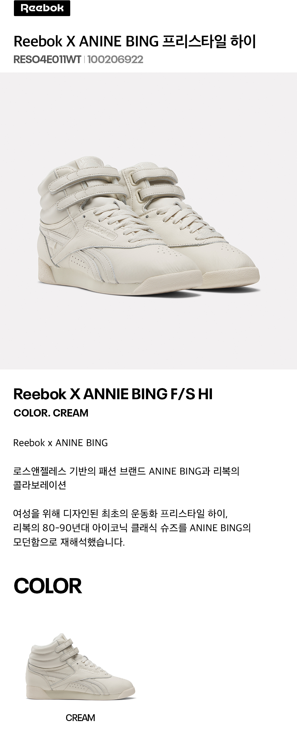 리복 X 애니빙 프리스타일 하이 크림