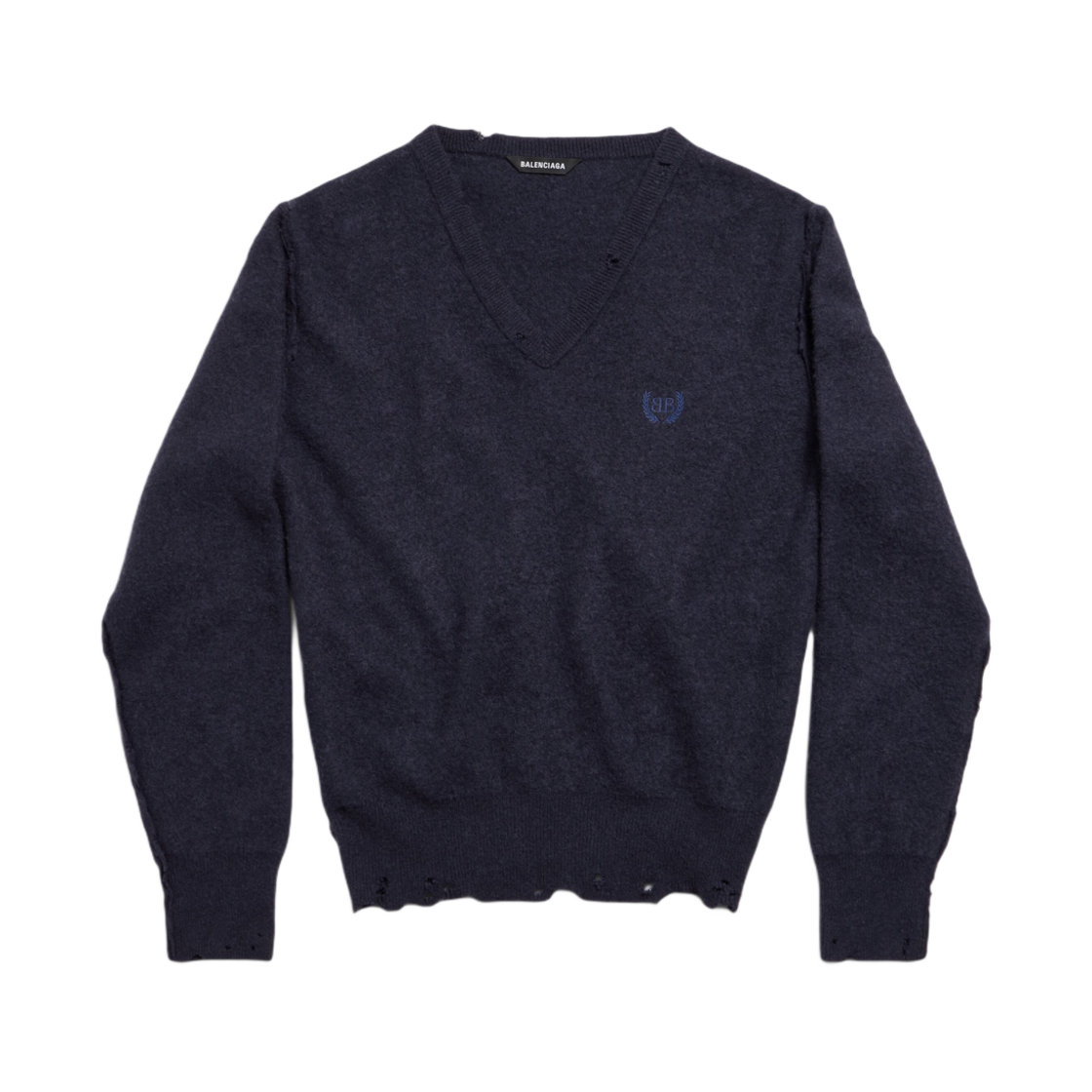 (W) Balenciaga Laurel Classic Inside-Out V-Neck Sweater Navy
