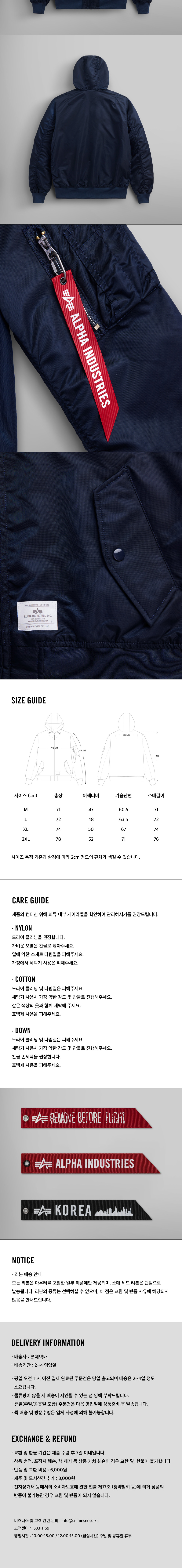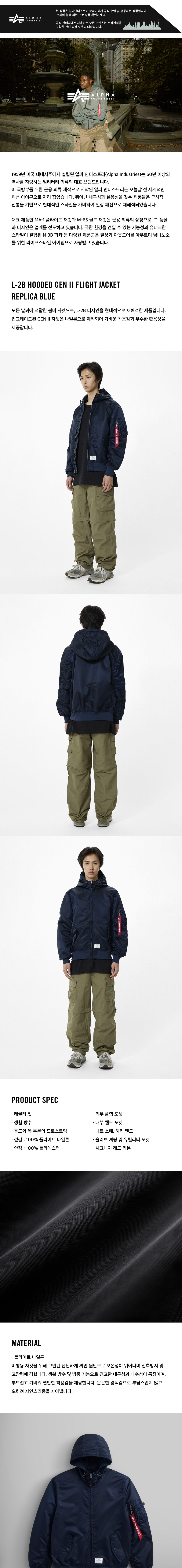 알파 인더스트리 L-2B 후디드 젠 II 플라이트 자켓 레플리카 블루