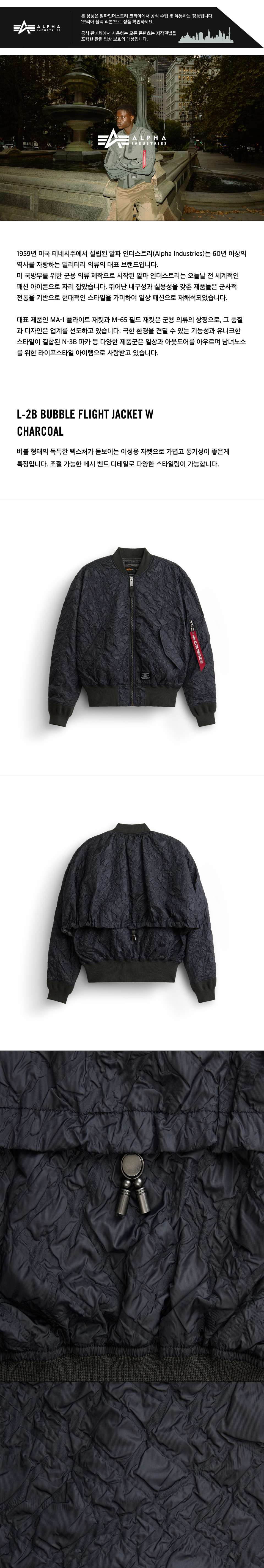 알파 인더스트리 L-2B 버블 플라이트 자켓 W 차콜