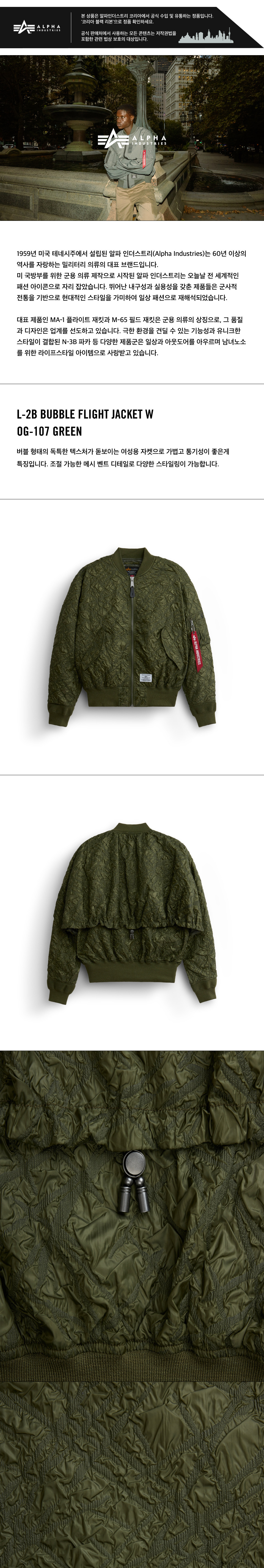알파 인더스트리 L-2B 버블 플라이트 자켓 W OG-107 그린