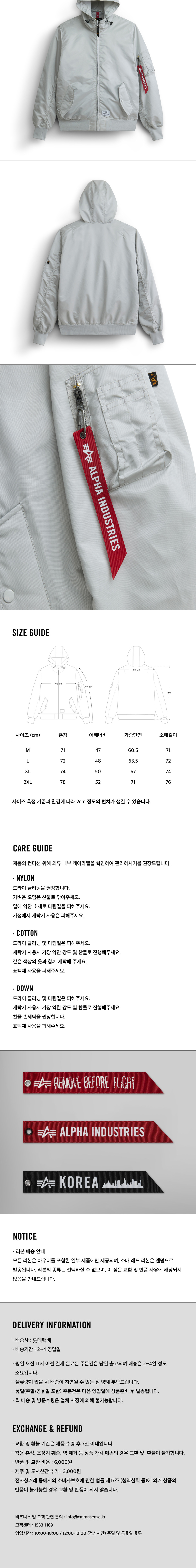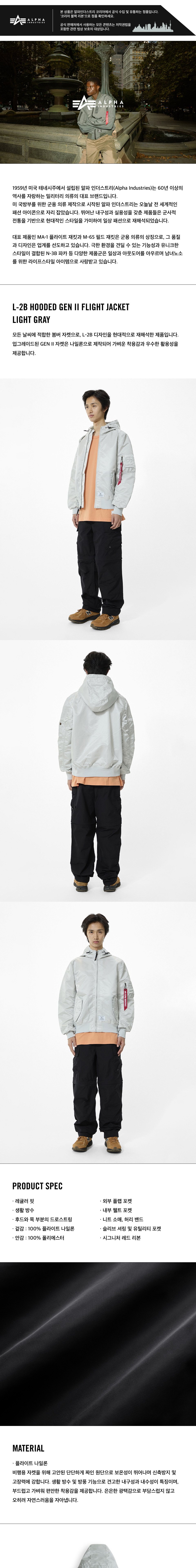 알파 인더스트리 L-2B 후디드 젠 II 플라이트 자켓 라이트 그레이