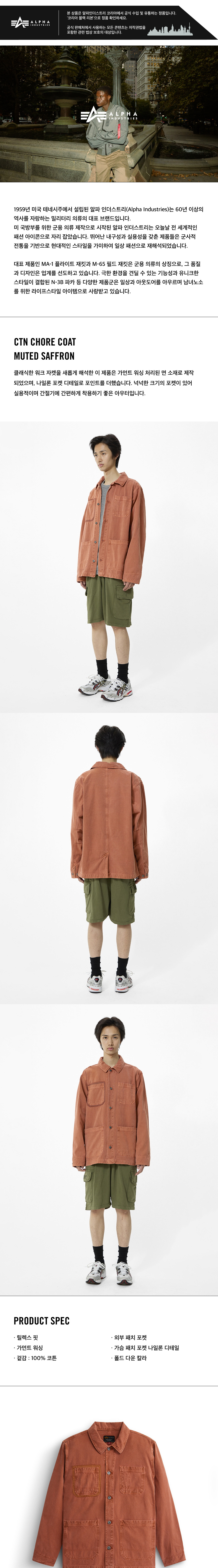 알파 인더스트리 코튼 초어 코트 뮤티드 사프론