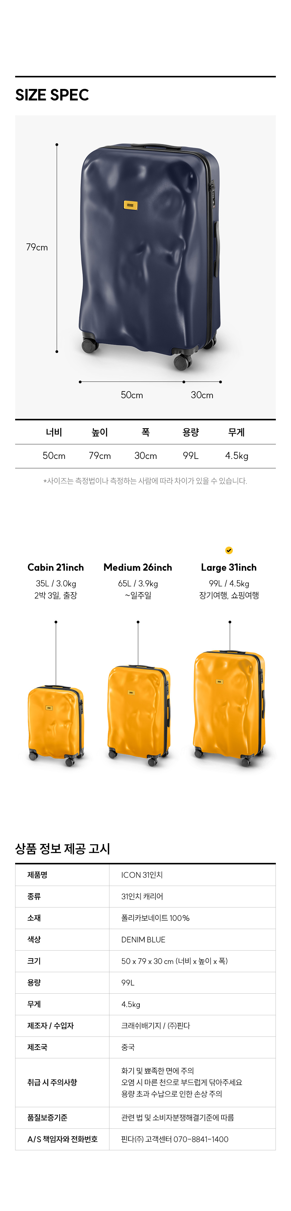 크래쉬배기지 아이콘 31인치 캐리어 데님블루