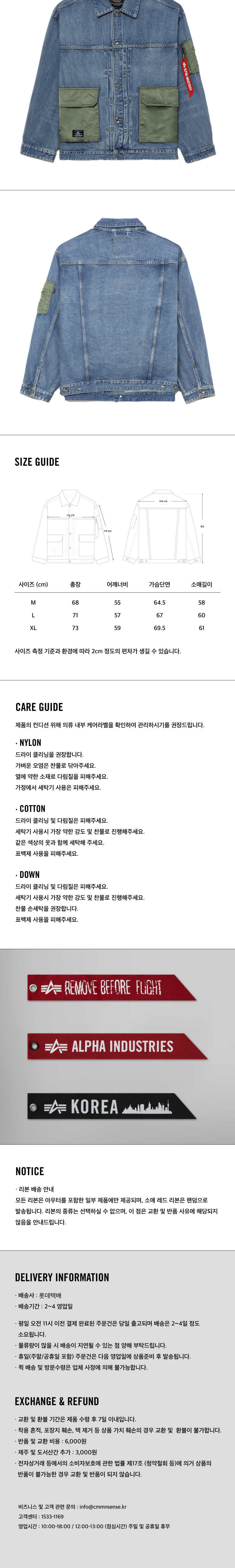 알파 인더스트리 데님 자켓 레플리카 블루
