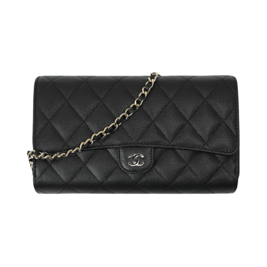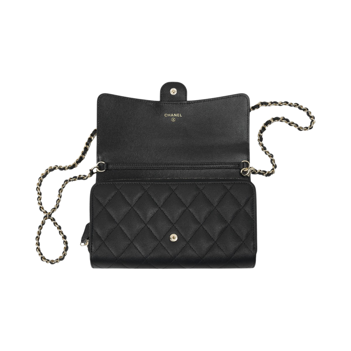 샤넬 클래식 체인 지갑 그레인드 카프스킨 & 골드 메탈 블랙