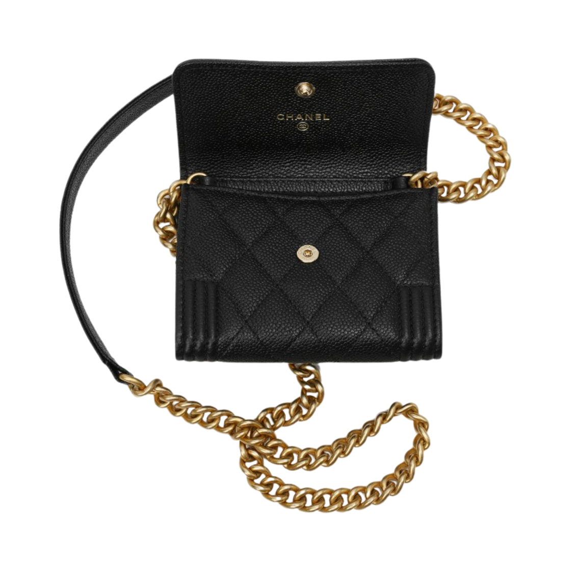 샤넬 보이 샤넬 플랩 체인 코인 지갑 그레인드 카프스킨 & 골드 메탈 블랙