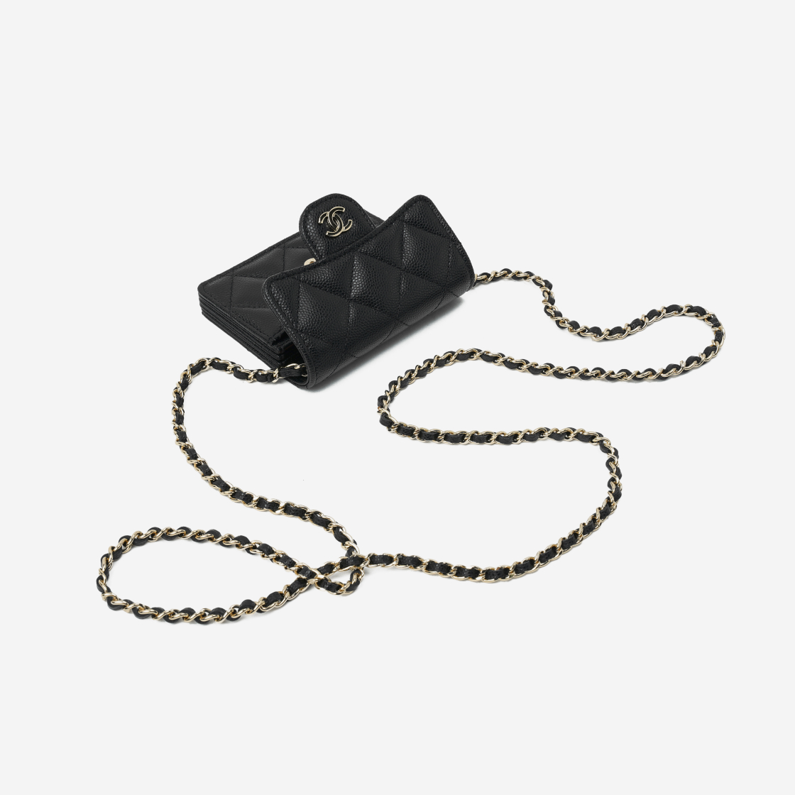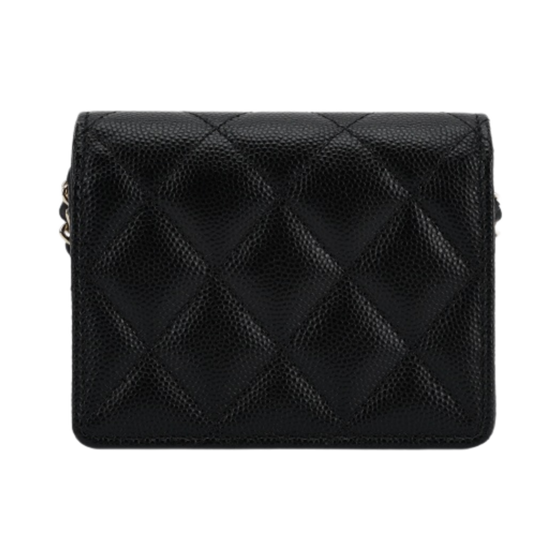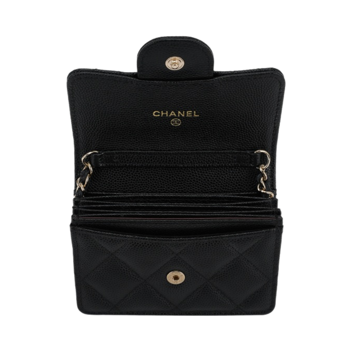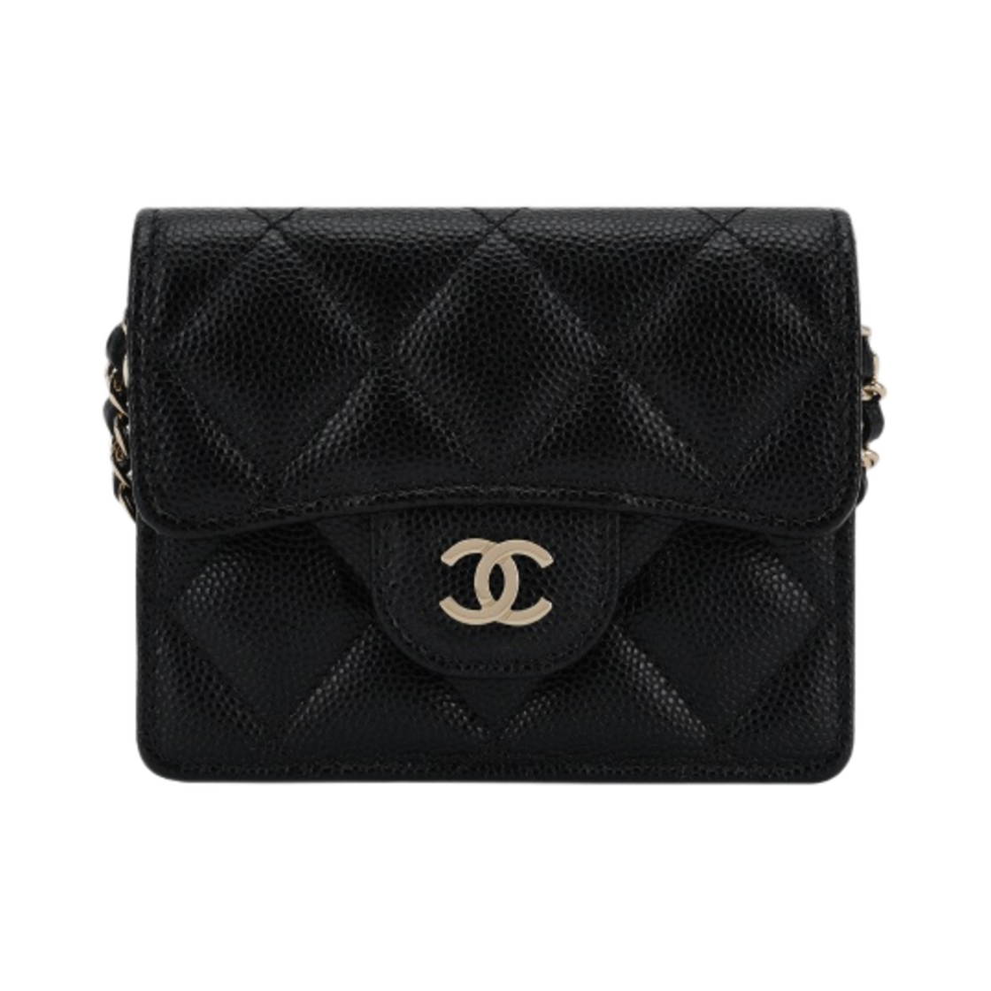 샤넬 클래식 플랩 체인 카드 홀더 그레인드 카프스킨 & 골드 메탈 블랙