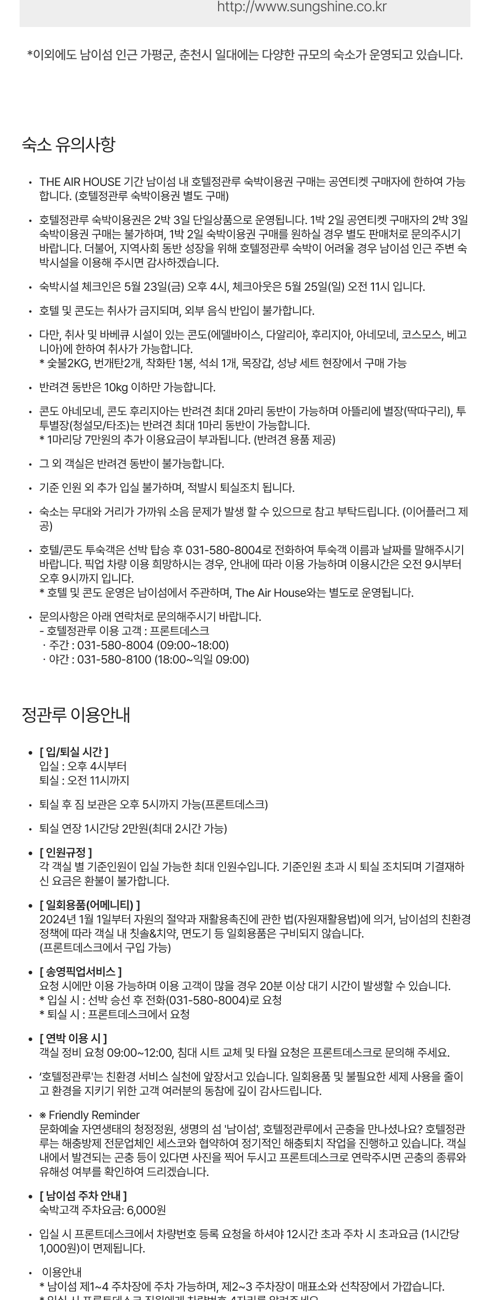 *취사불가 (콘도별장 콘도1~6만 취사가능)
