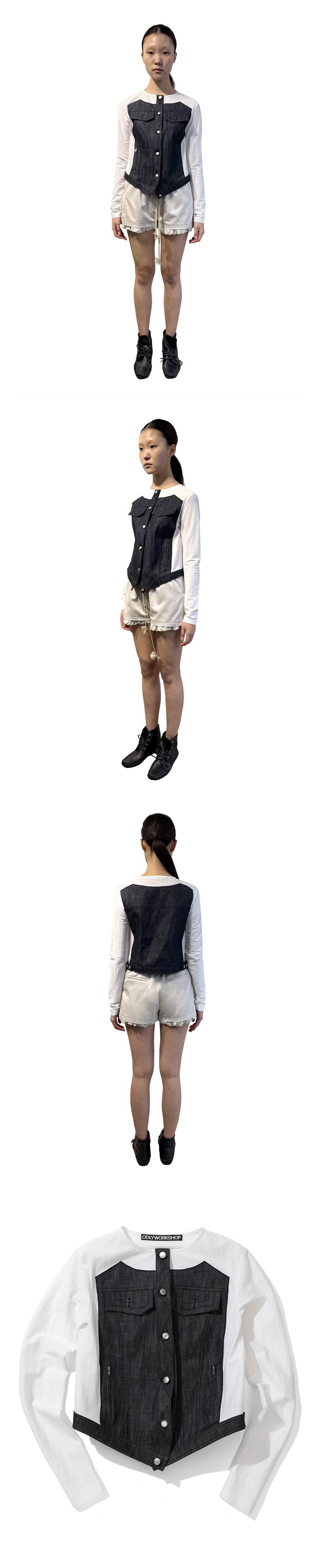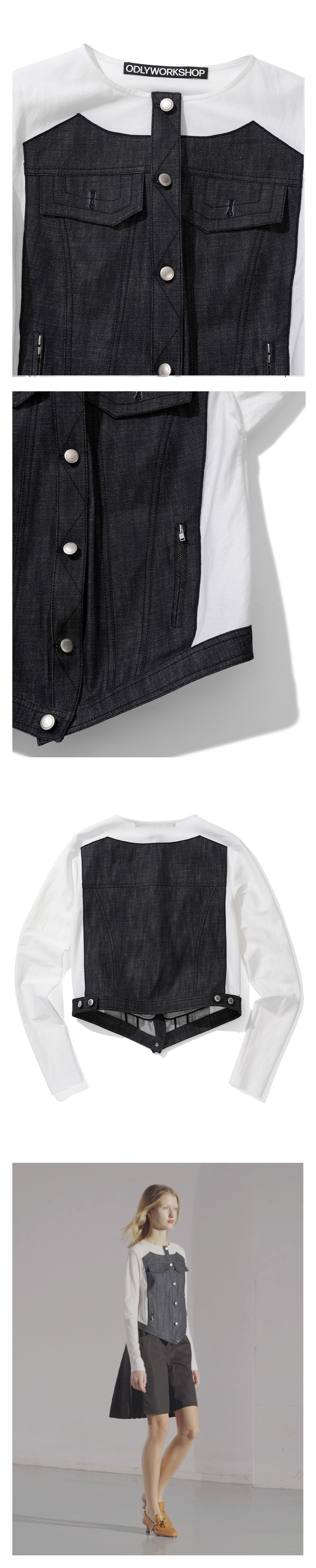 오들리워크샵 데님 하이브리드 자켓. 워시드