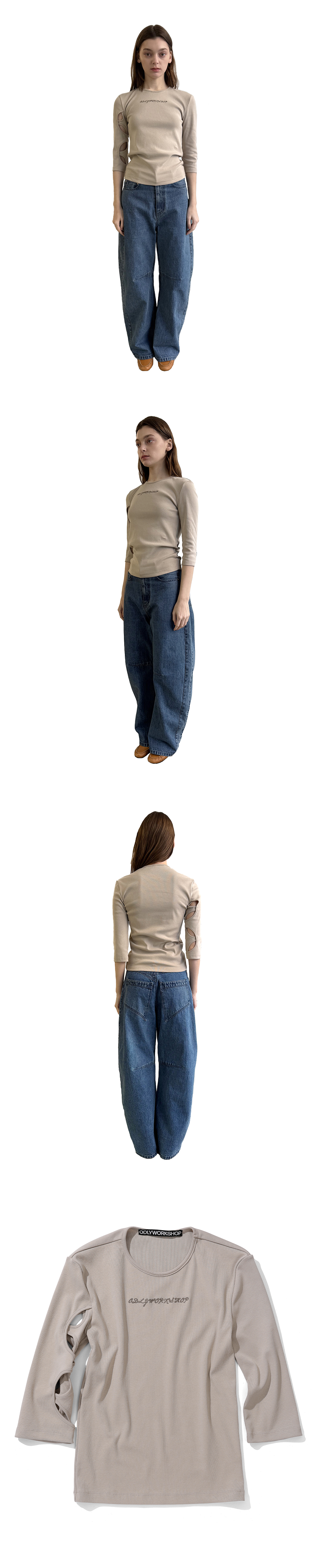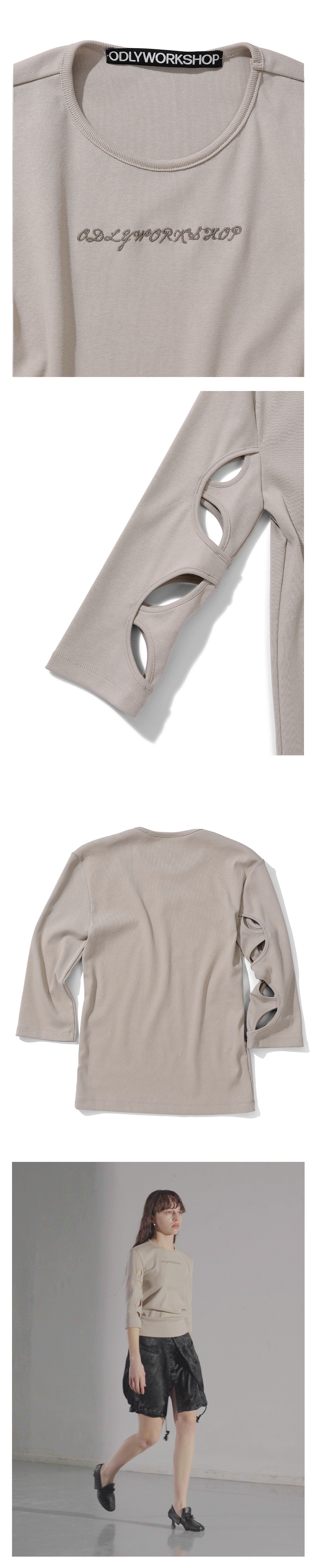 오들리워크샵 3-쿼터 컷아웃티 그레인