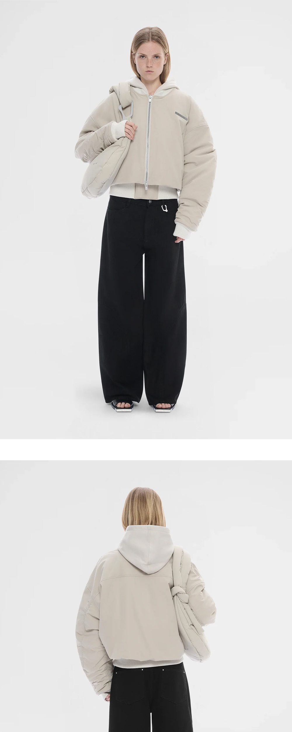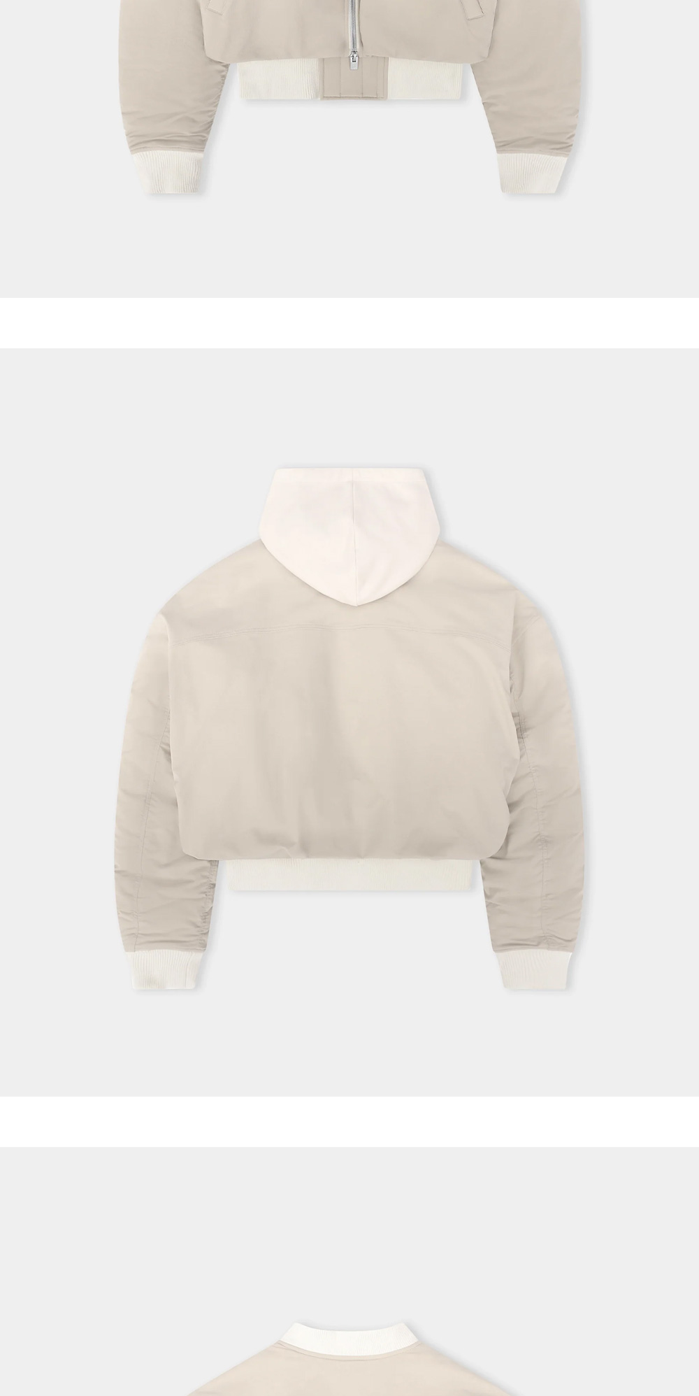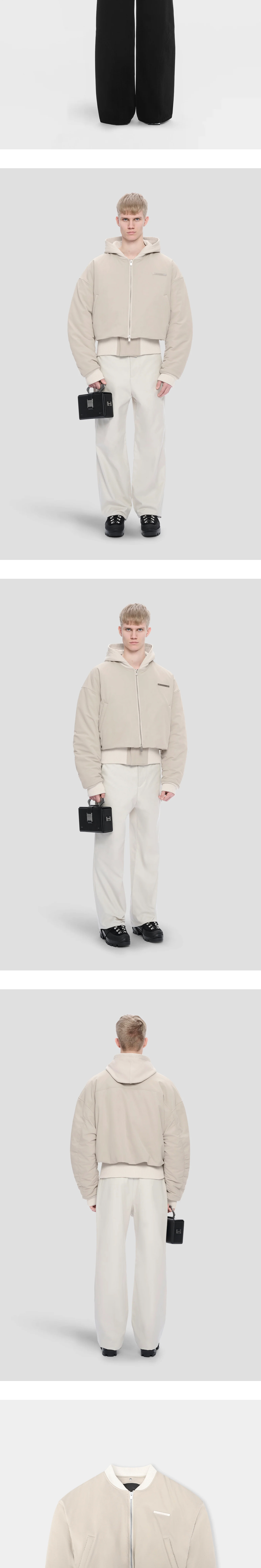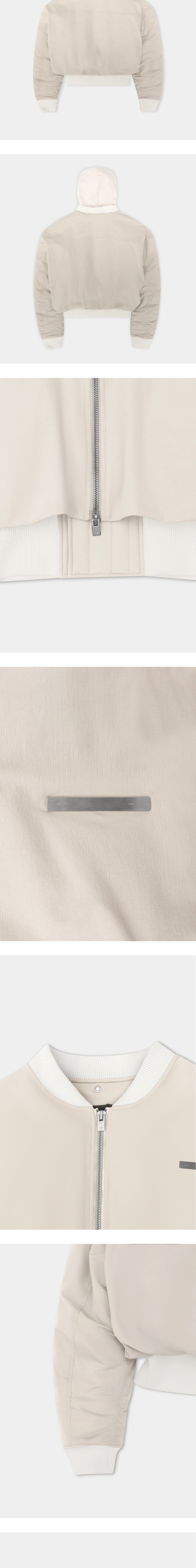 나일론 원단의 크롭 봄버 재킷, 엘리엇 에밀의 뉴메틱 봄버 자켓입니다. - 구조화된 나일론 원단 - 오버사이즈 핏 - 양방향 앞 지퍼 잠금 장치 - 리브 커프, 밑단 및 칼라 - 리브 밑단에 이중 벨크로 잠금 장치 - 분리 가능한 저지 루프백 후드 - 앞면에 웰트 포켓 - 목에 가장자리 O링
