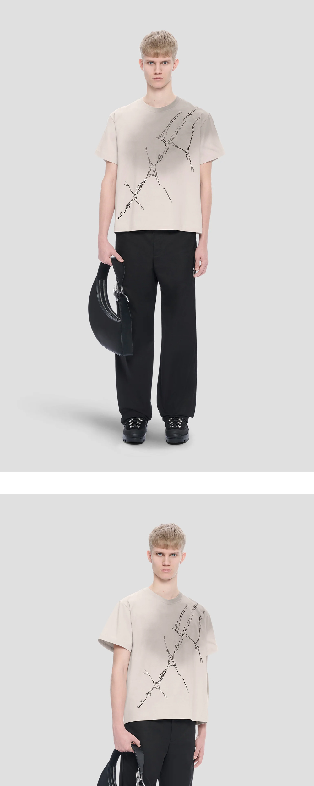 앞면에 고무 3D 프린팅이 되어 있는 엘리엇 에밀의 플럭서스 티입니다. - 레귤러 핏 - 전면에 스프레이 워시 베이스 - 앞면에 화산 고무 3D 프린트 - 뒷면에 레이저 그래픽 프린트