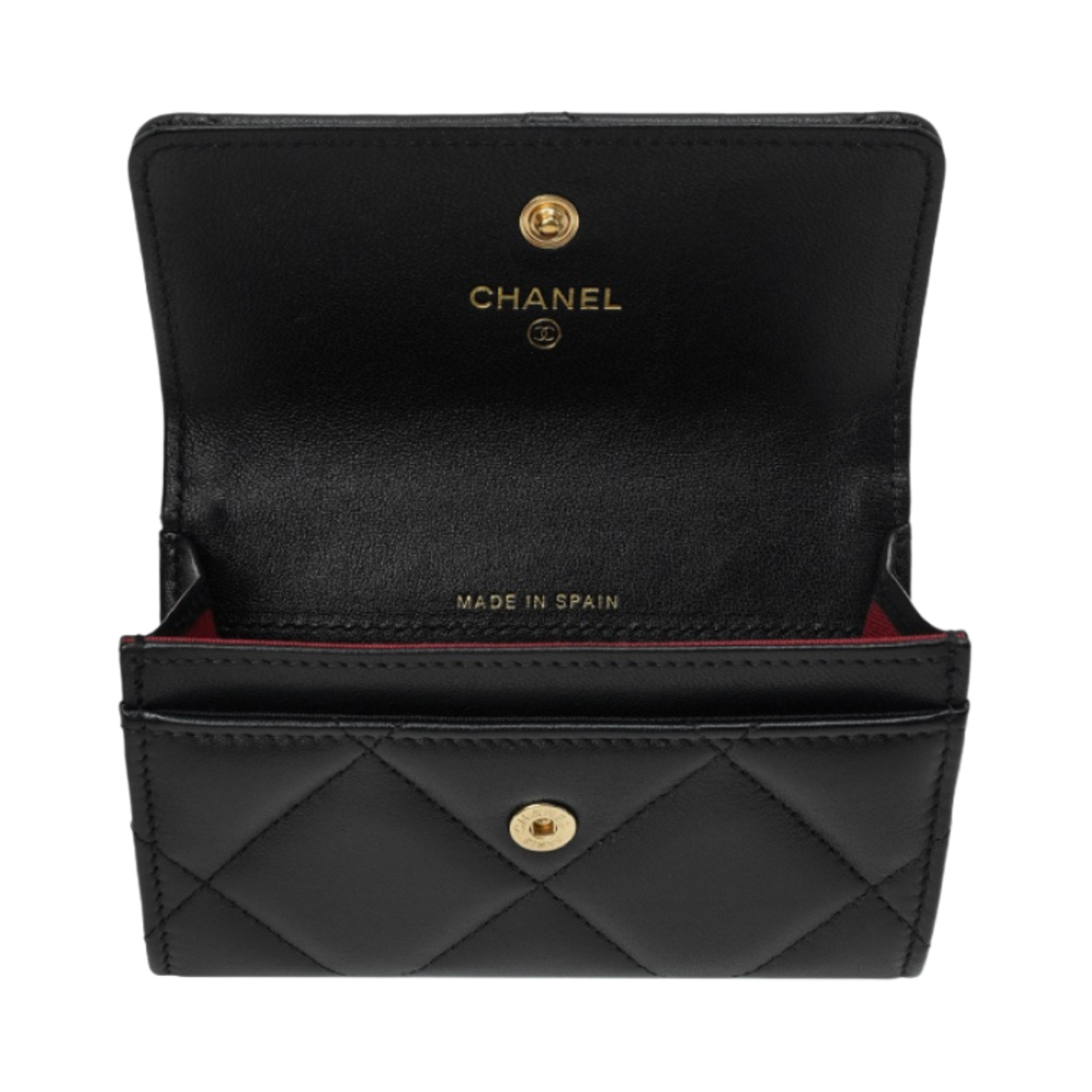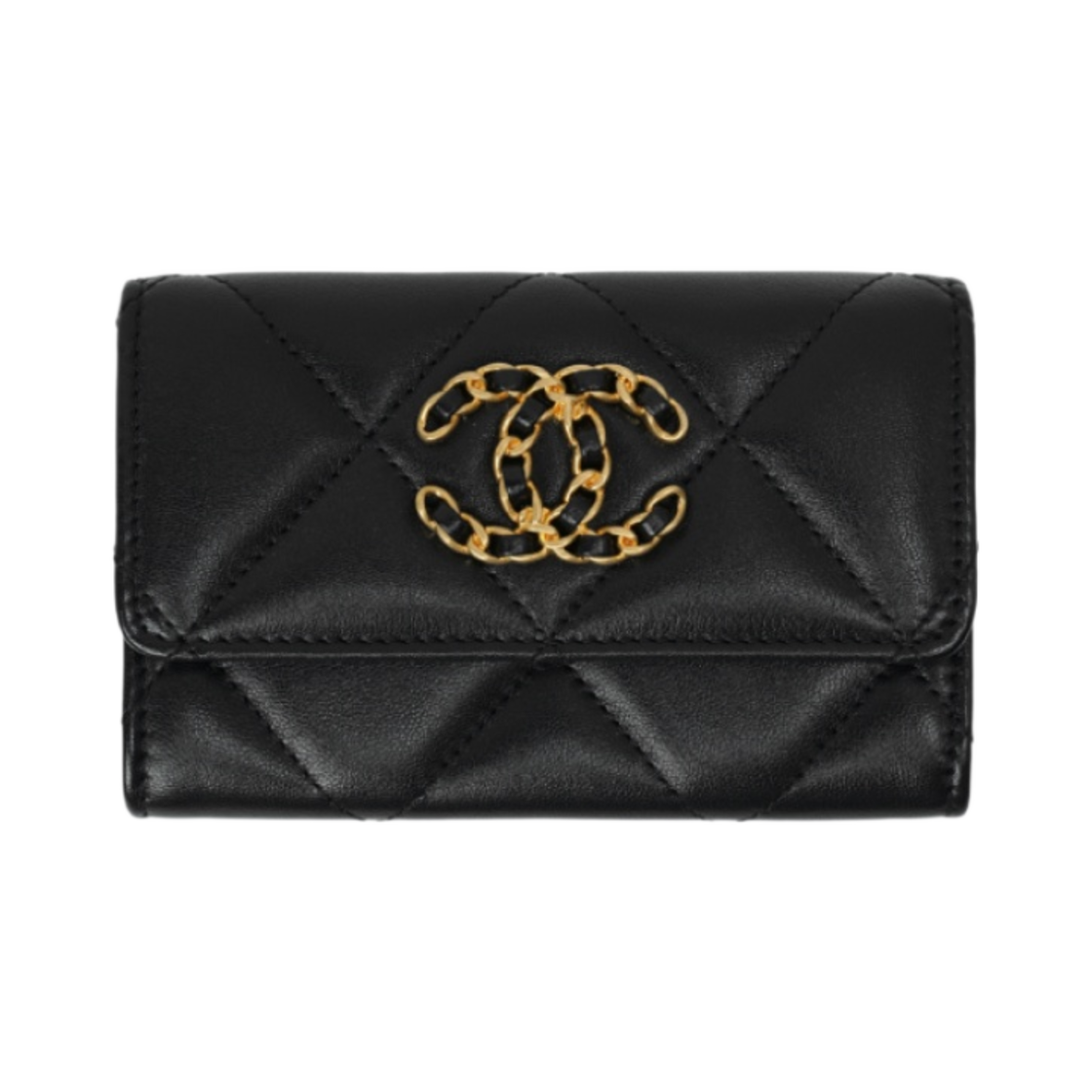 샤넬 19 플랩 카드 홀더 램스킨 & 골드 메탈 블랙