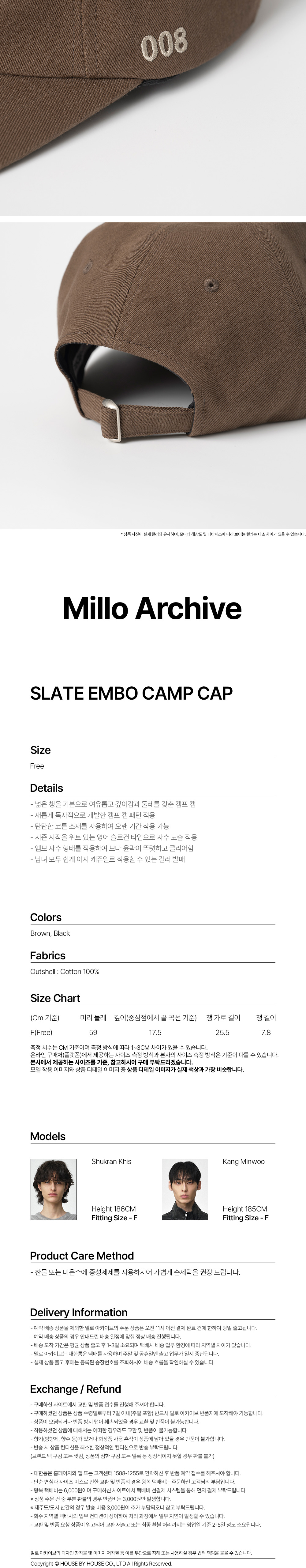 밀로아카이브 슬레이트 엠보 캠프 캡 브라운