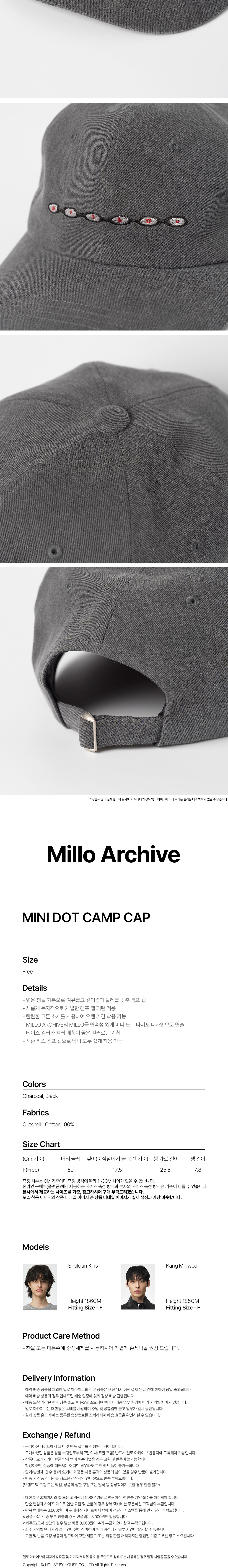 밀로아카이브 미니 도트 캠프 캡 차콜