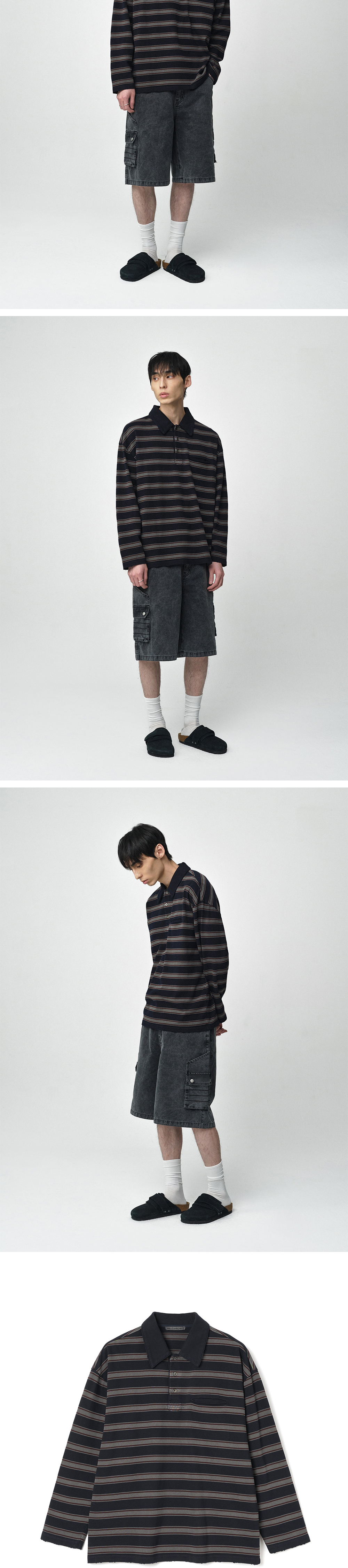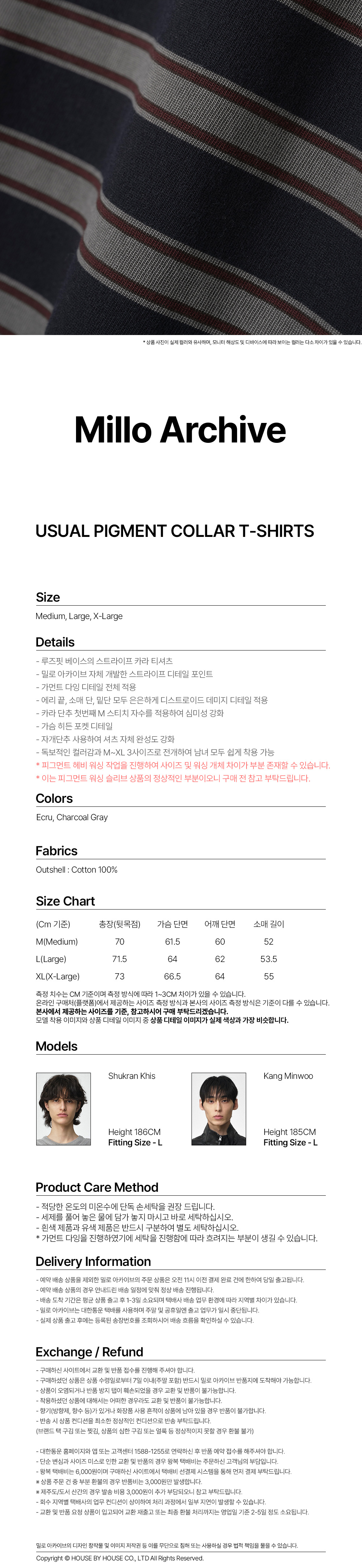 밀로아카이브 유주얼 피그먼트 카라 티셔츠 차콜 그레이