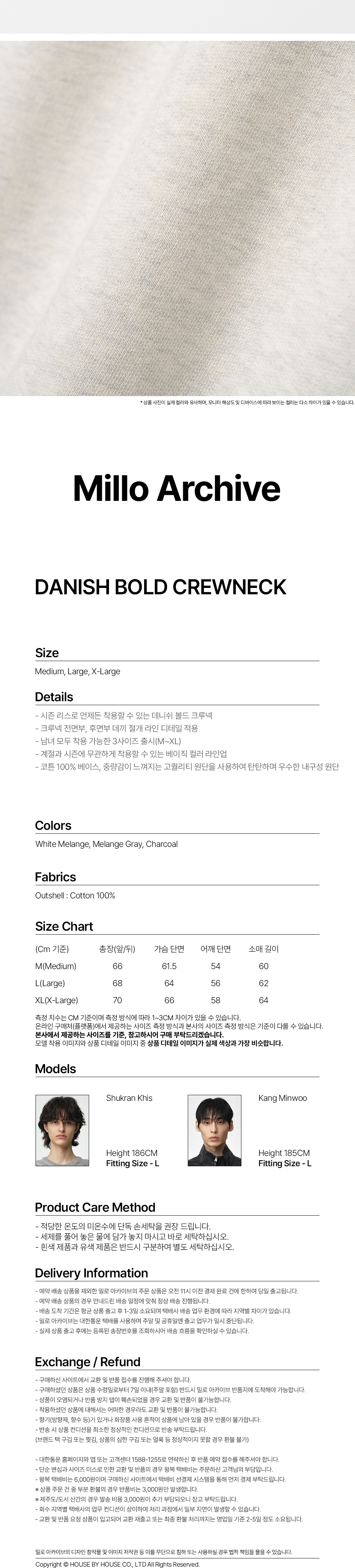밀로아카이브 데니쉬 볼드 크루넥 화이트 멜란지