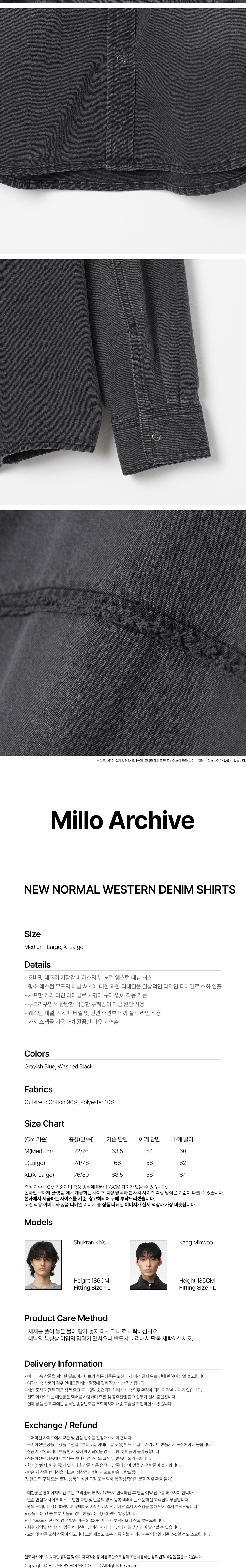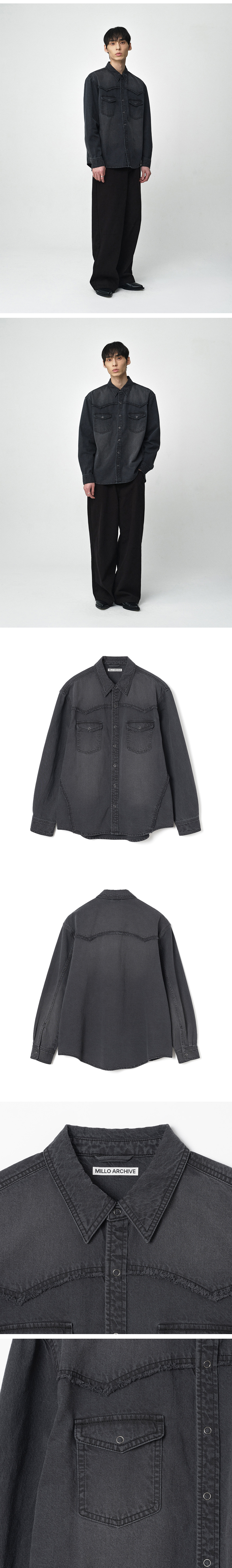 밀로아카이브 뉴 노멀 웨스턴 데님 셔츠 워시드 블랙