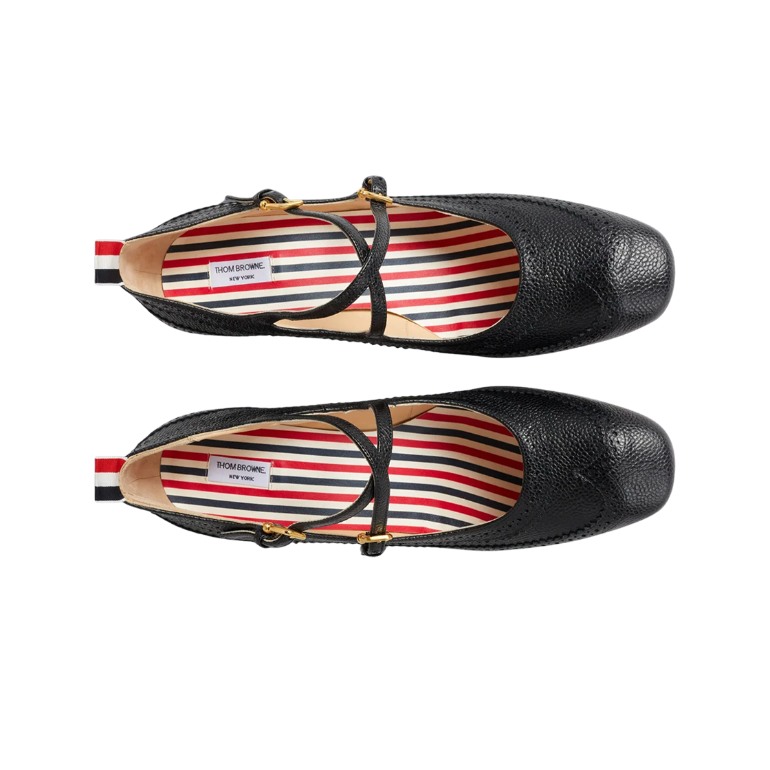 (W) 톰브라운 페블 그레인 레더 브로그 75mm 블록 크리스 크로스 메리 제인 힐 블랙