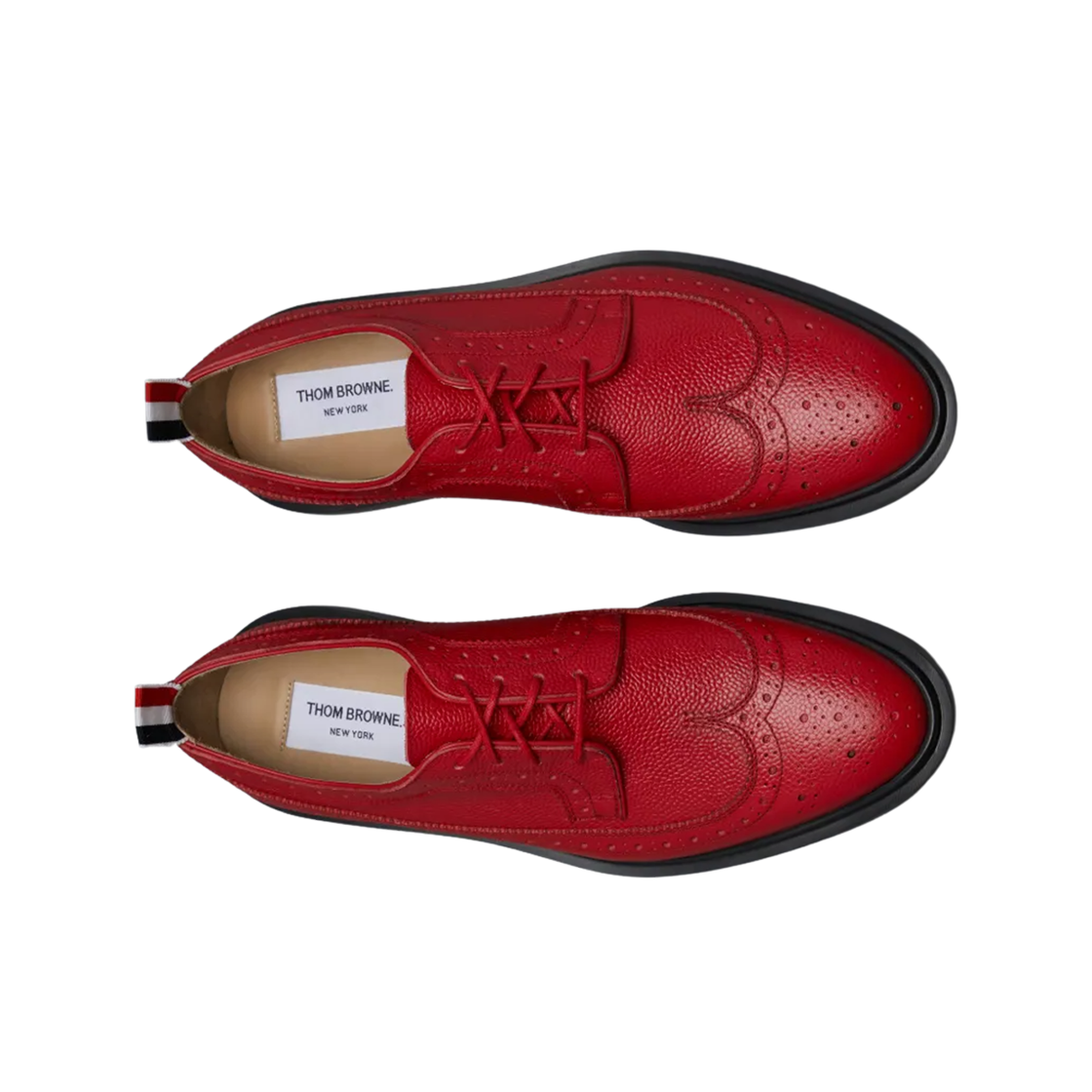 (W) Thom Browne Pebble Grain Leather Longwing Brogue Red