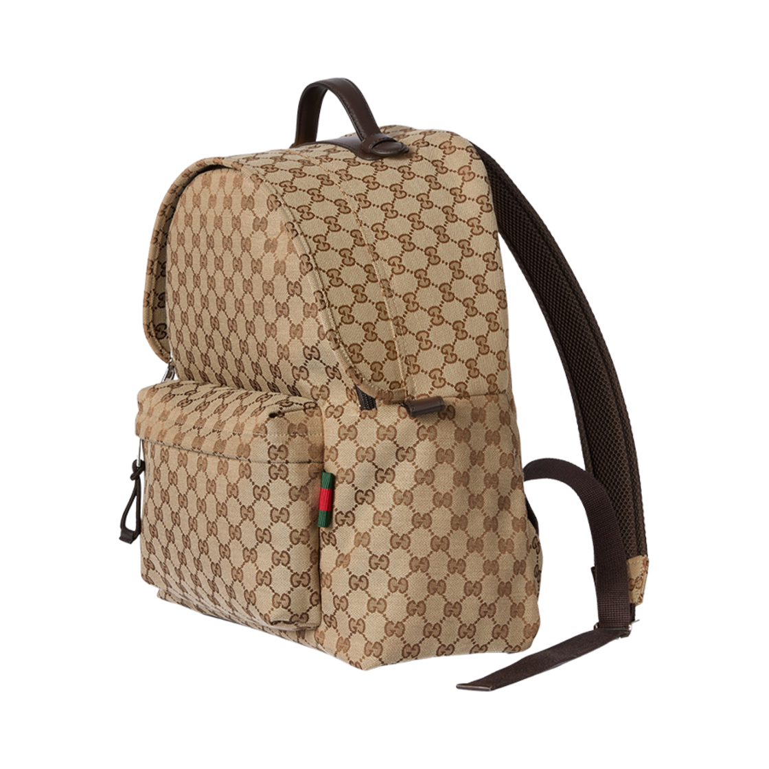 Gucci Medium GG Backpack with Web Beige Dark Brown