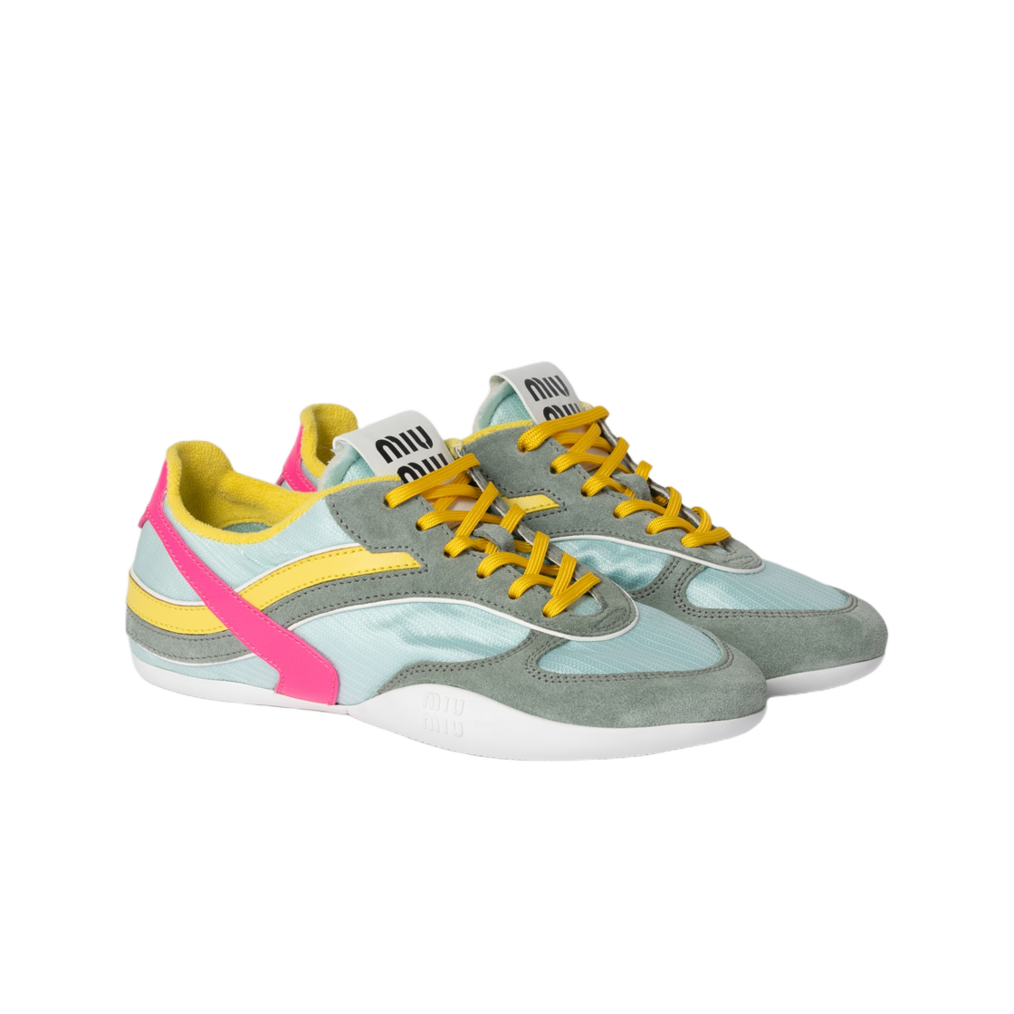 (W) 미우 미우 김나지움 테크니컬 소재 앤 스웨이드 스니커즈 아니스 푸시아